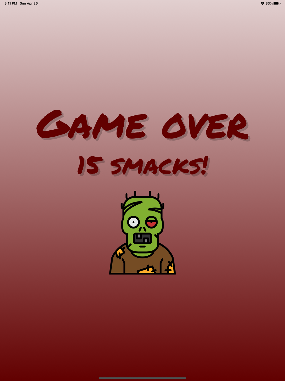 Are you faster than the Zombie? Hit it as fast as you can and try to survive! Start the game by pressing the zombie and the be ready to tap on the zombie to make them go back in the hole. The zombie will show up faster and faster the longer the game goes on. How many smacks can you achieve before he takes you.