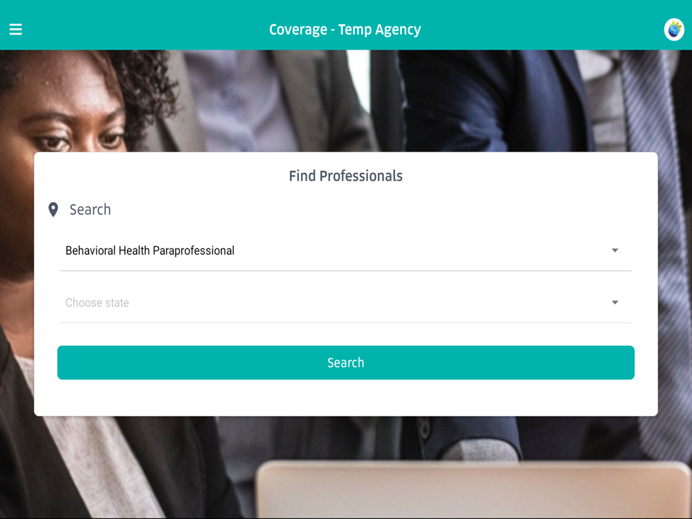 COVERAGE - Temp Agency is the first Behavioral Health Staffing Agency in the palm of your hand. Employees and Employers create a profile. Employees showcase their skill set and are able to post their current credentials. Employers describe the type of facility they are staffing for and list work locations. Employees are rated by Employers. Employers are rated by Employees. Any individual or agency that falls below a three star rating will be removed from the App.