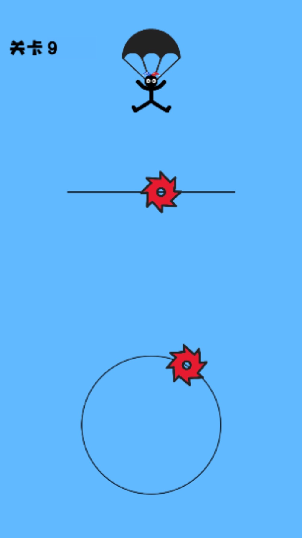 1.在游戏中,火柴人从空中快速下降,玩家需要根据空中的障碍物的分布,按住屏幕就可以打开降落伞,火柴人下降的速度就会变慢。
