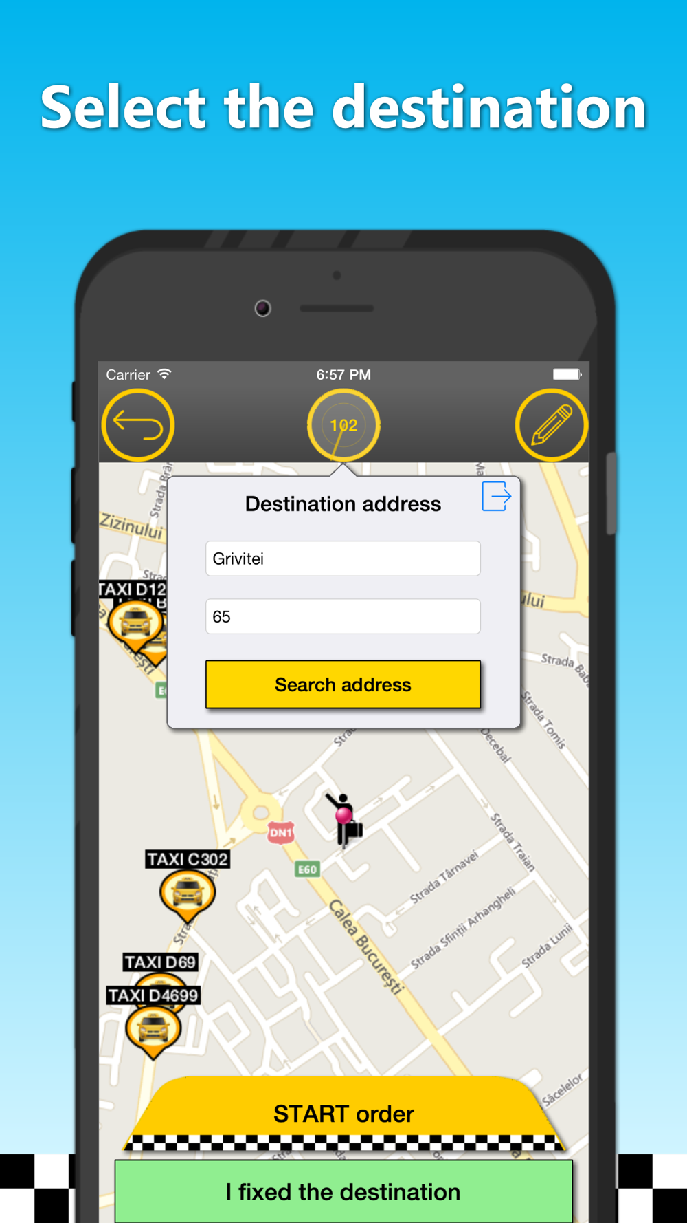 - The location of the terminal is automatic, for adjustment move the map so that the location for TAXI arrival is the desired place.