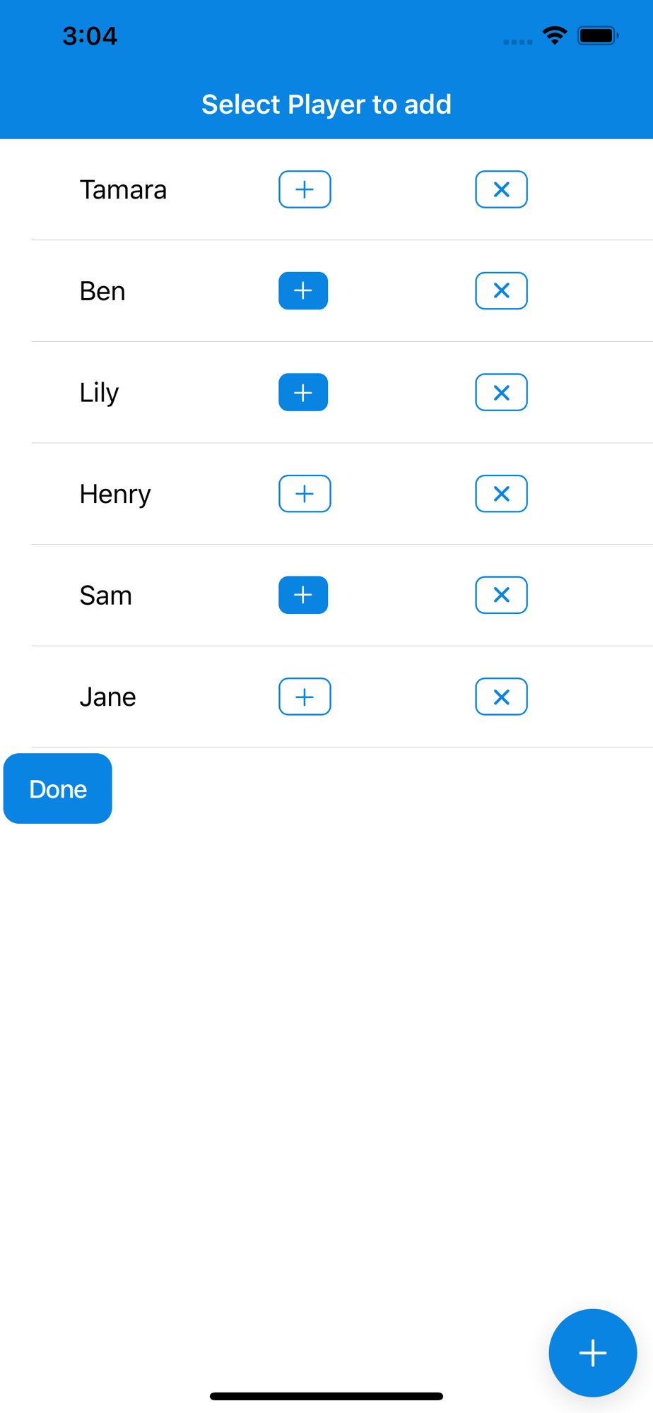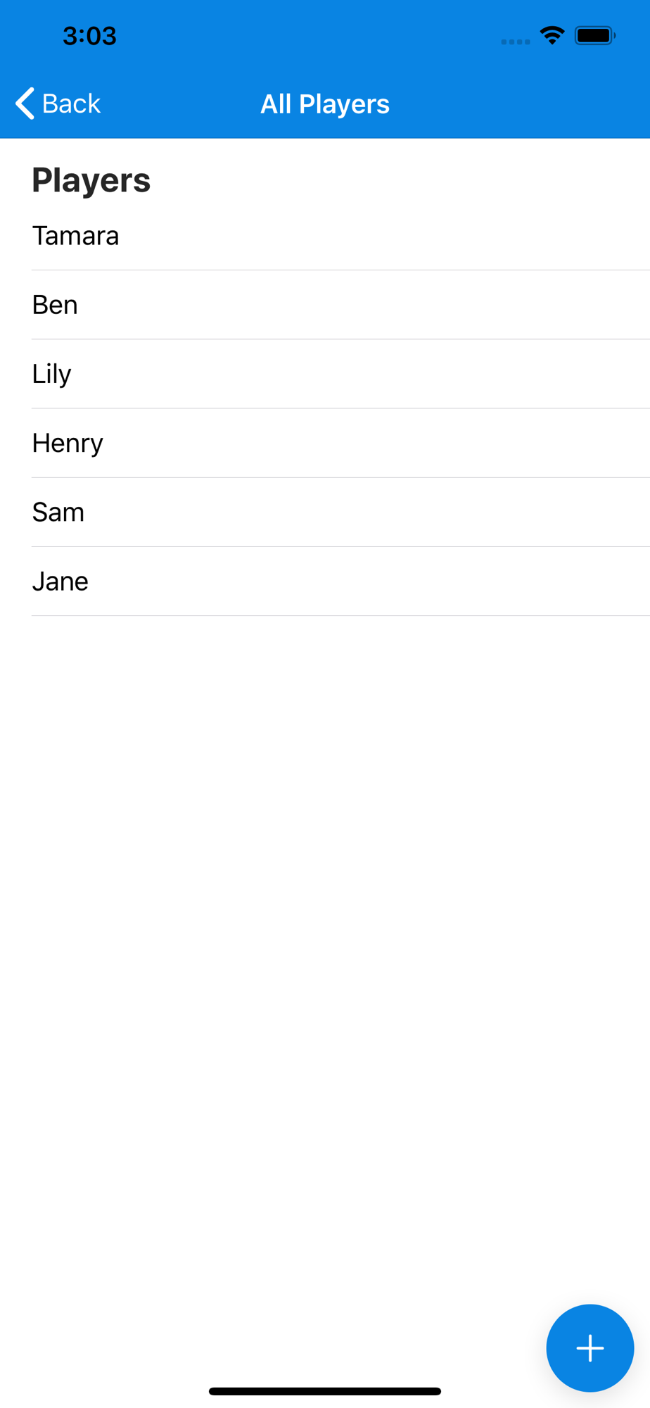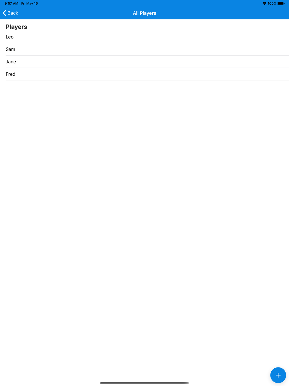 On the main page, there is a master list of all users. Add as many users as you want, but users can't currently be removed independently. It will keep the most frequent users at the top of the list. When a game is created, you select which users are in the current game. You can also add players when creating a game.