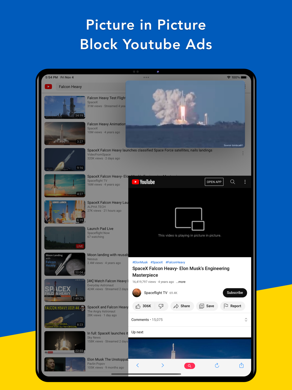 This blocks Youtube ads and play in the background with Picture-in-Picture
