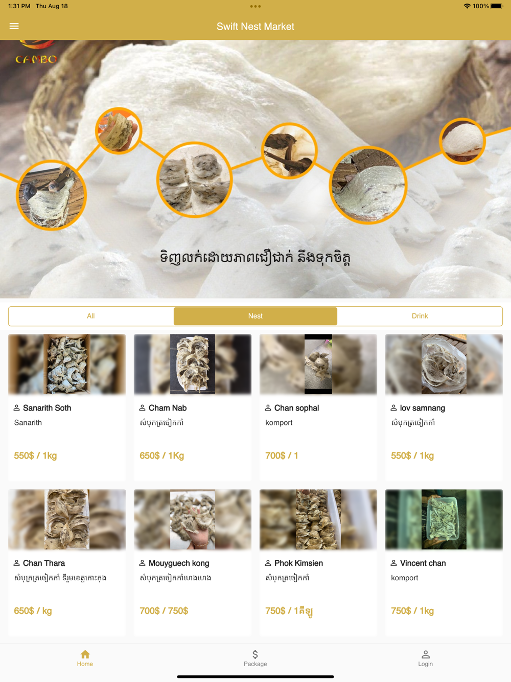 Swift Market Cambodia application is the application that user can find product relate to swift bird in Cambodia as nest or saliva. User can contact directly to owner if they want to buy.