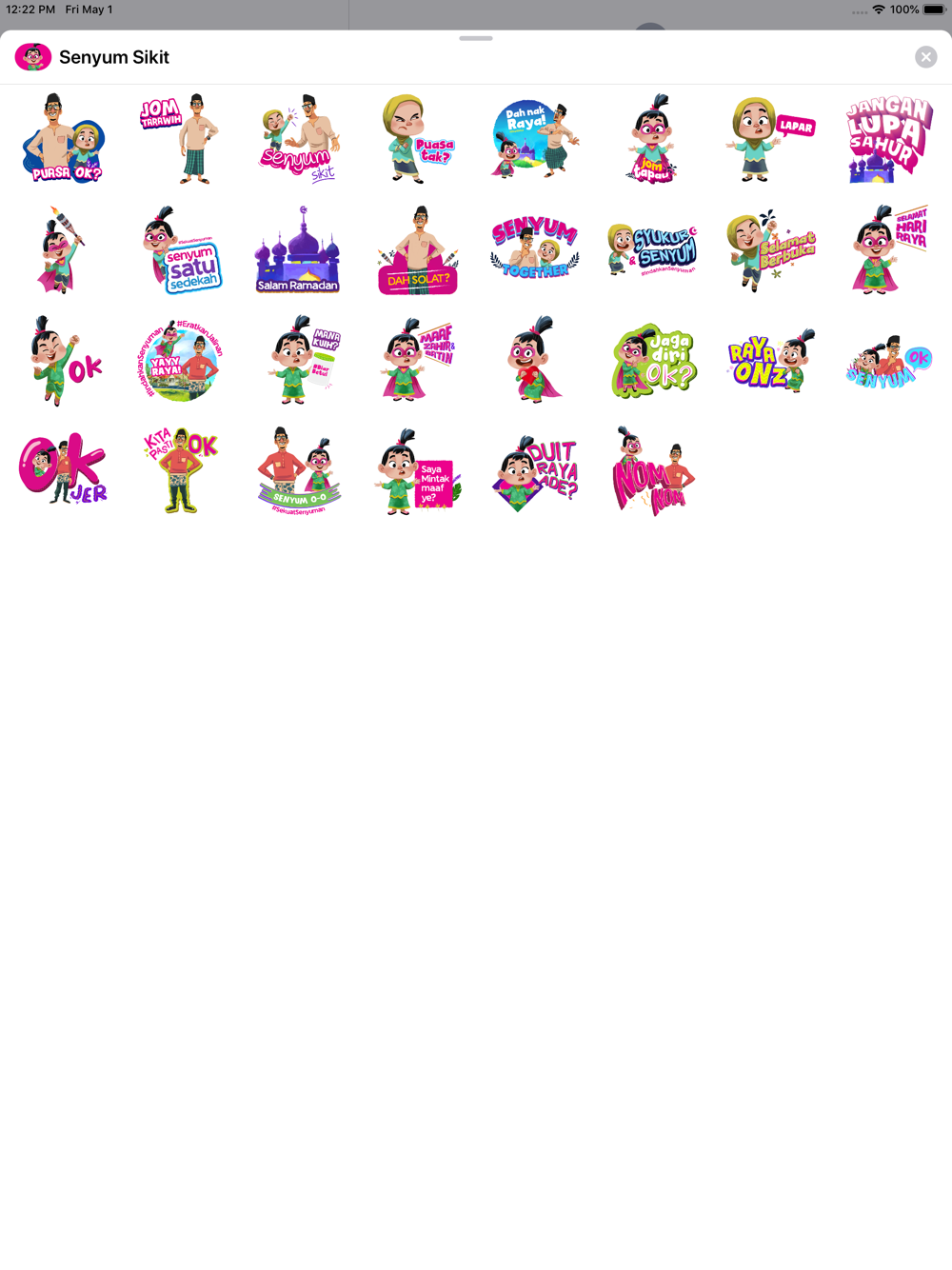 Kongsi kegembiraan dengan keluarga dan sahabat handai anda sepanjang Ramadan & Raya ini dengan pelbagai sticker ekspresi dan gaya yang pastinya akan mengukir lebih senyuman dalam setiap perbualan anda.