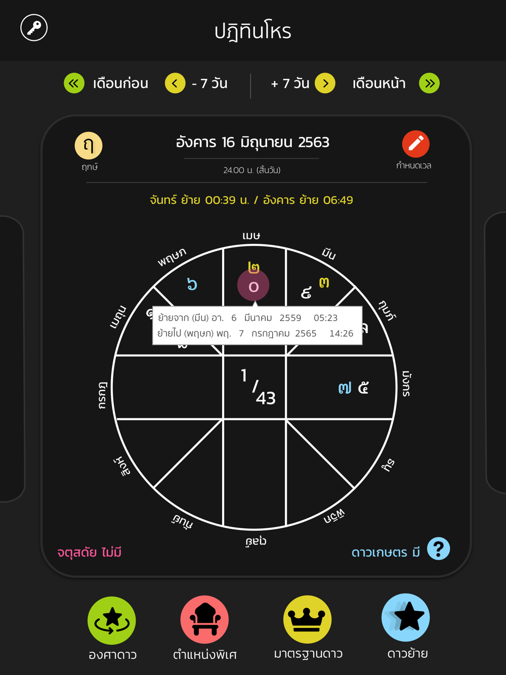 - บอกเวลาดาวโยกย้าย ปรับเปลี่ยนราศี ได้อย่างแม่นยำ