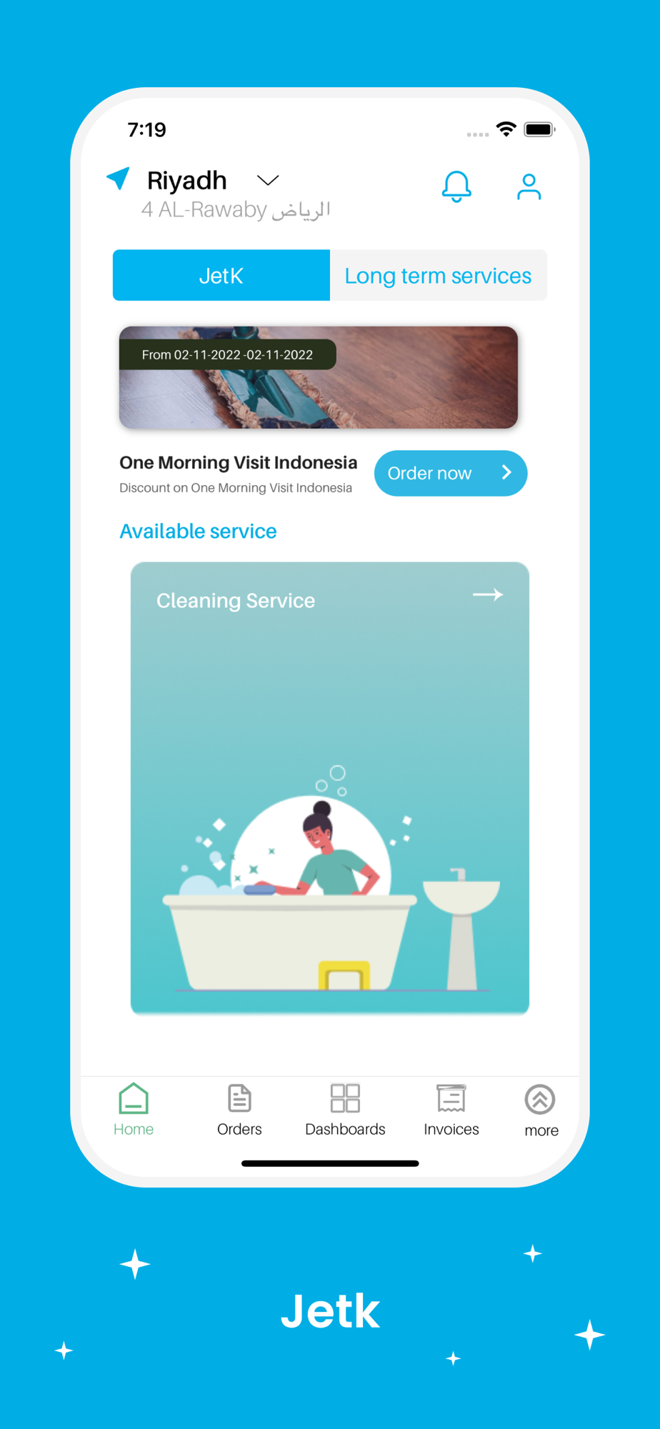 JEtk service is an electronic platform from Jussur Emdad Company that specialized in providing hourly cleaning and sterilization service for individuals within the Kingdom of Saudi Arabia.