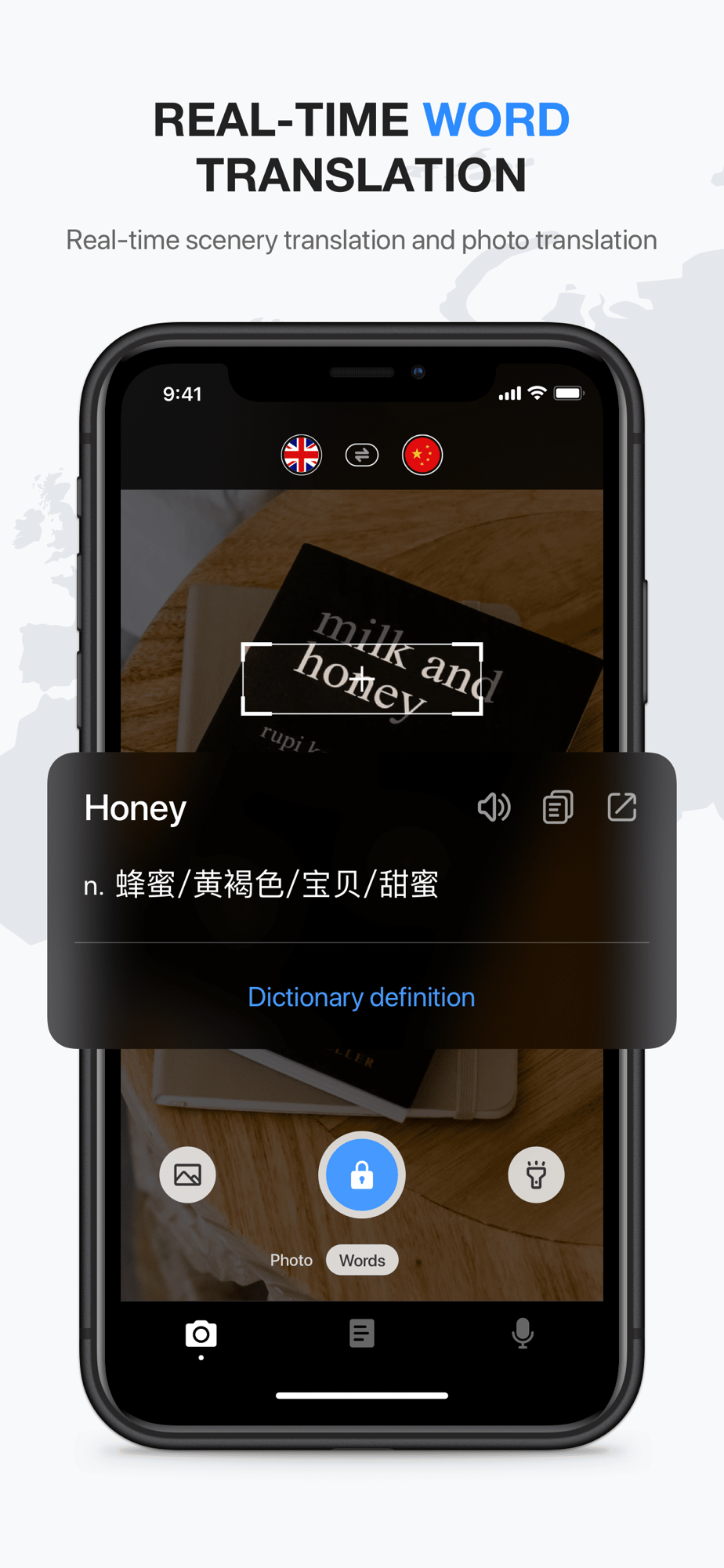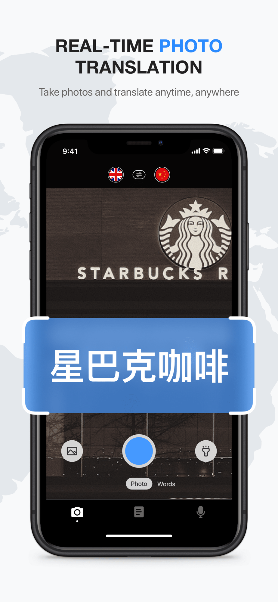 Mobile Photo translation, photo album translation, menu, books, road signs… you can take photos at will and get translation results in time.