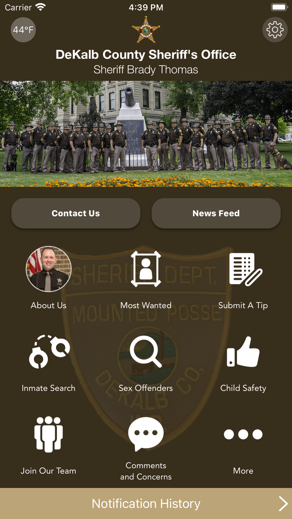 The Dekalb County Sheriff’s Office mobile application is an interactive app developed to help improve communication with area residents. The Dekalb County Sheriff App allows residents to connect with the Dekalb County Sheriff’s Office by reporting crimes, submitting tips, and other interactive features, as well as providing the community the latest public safety news and information.