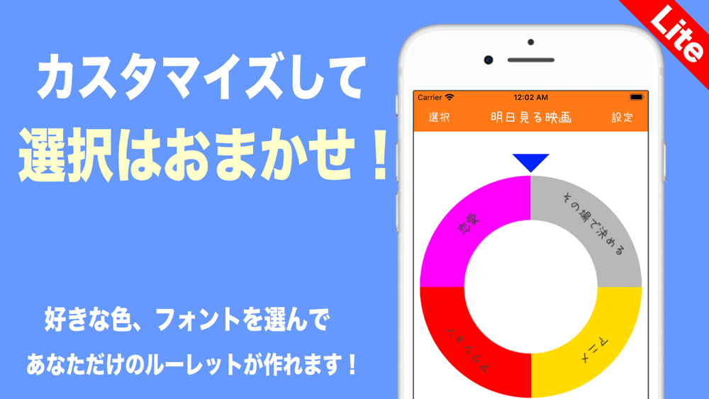 ランチメニューや観光地巡り、掃除当番、罰ゲームなどあらゆる事柄を公平に選択するためのルーレットアプリです!