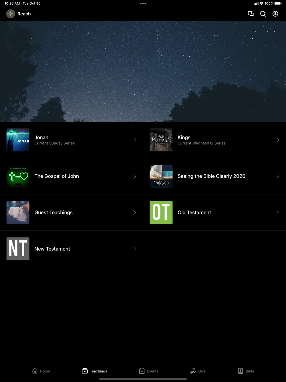 The Reach Church Jax app will help you stay connected with the day-to-day life of our church. - The Reach app features the Sunday Morning home tab, which is a great tool to help you get connected with Reach. This tab is the place to go before, during, and after each service. You'll find the weekly Scripture readings, message notes, Church updates and information, sign-ups, and giving with our mobile agape box.