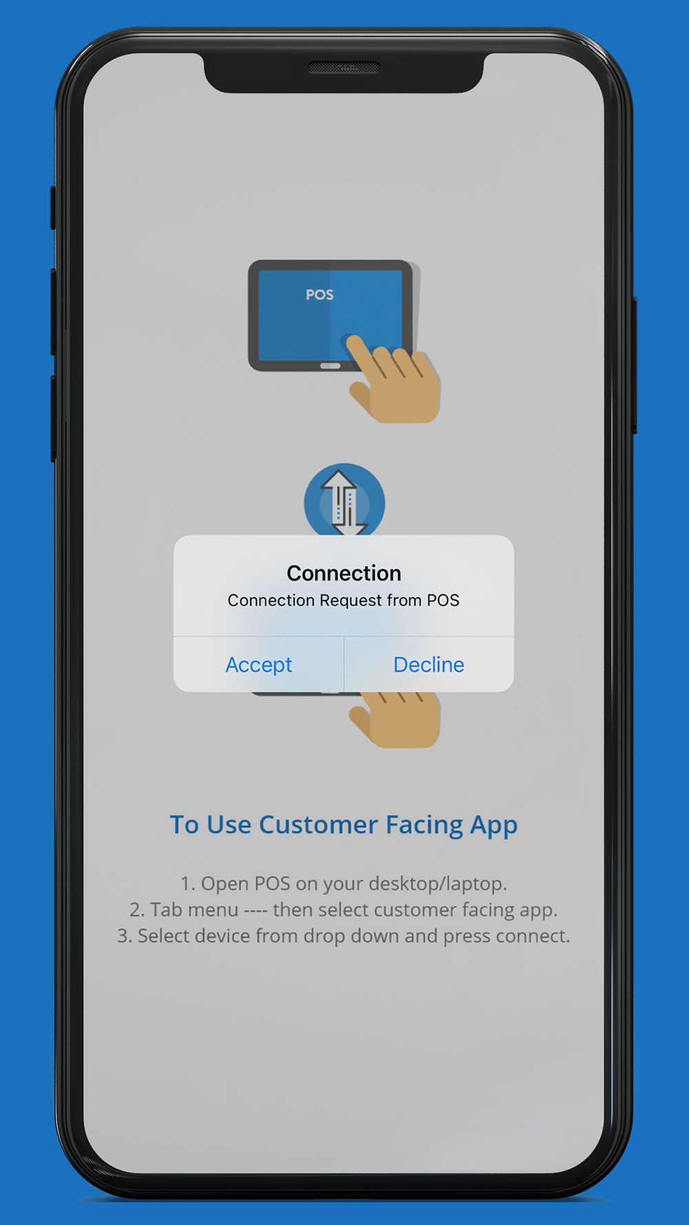 Paired with the HieCOR Point of Sale, this application will give a customer facing screen showing the order contents as they are rung up. It will allow the customer to input their Phone and/or email address for Loyalty tracking + enable signature, tip collection and receipt delivery.