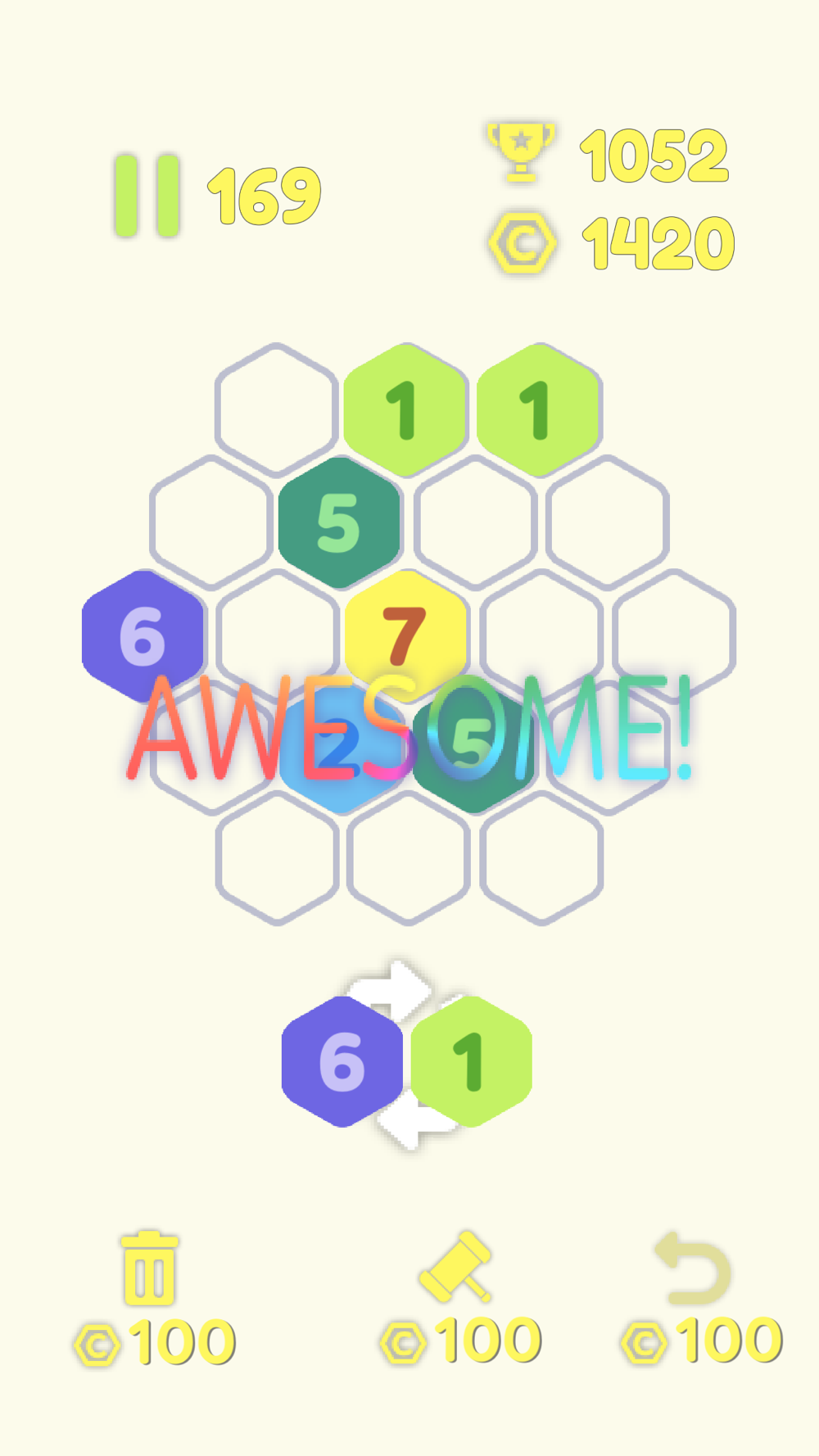 Addictive and exciting puzzle game with simple gameplay: click, drag & merge numbers in colorful hexagons to make the lucky number seven. Challenge yourself to make the highest score on record, with the help of your strategy and a little luck! A very good number merge puzzle game to pass your time!