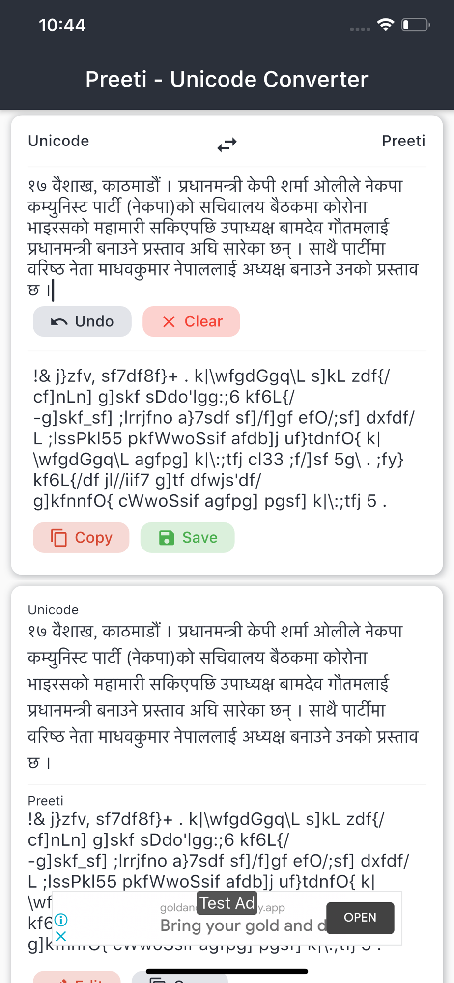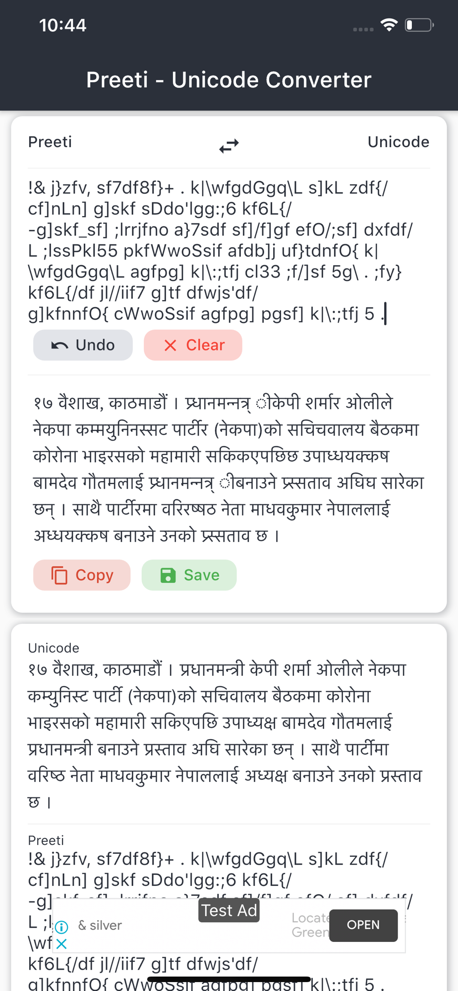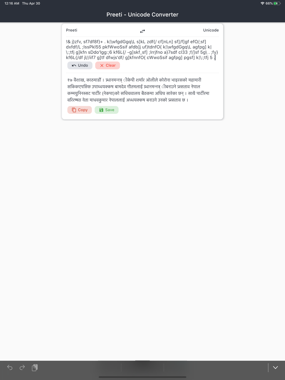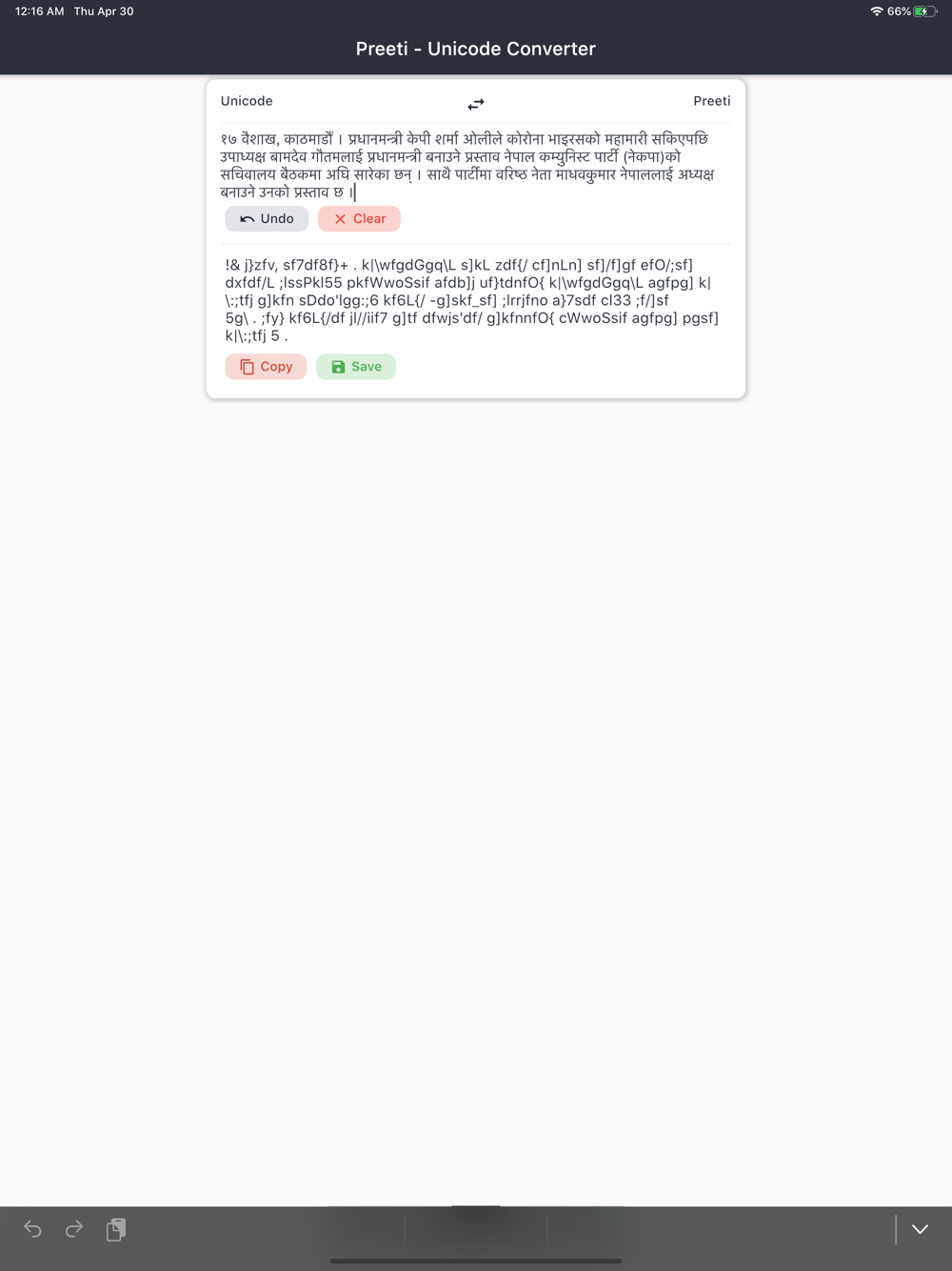 Best application on the store to convert typical Preeti text to Unicode and Unicode text to Preeti. You can save, copy, paste your conversions. Blazing fast conversion.