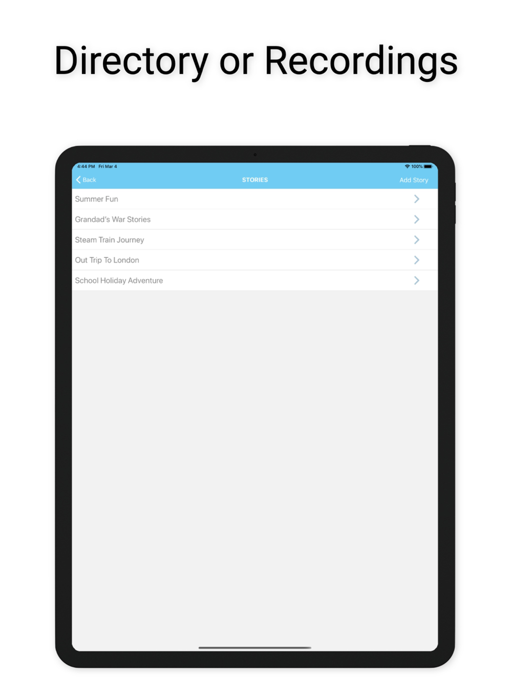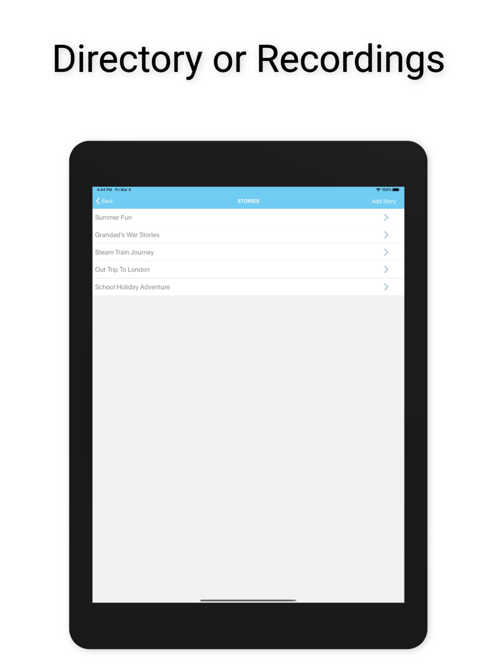 With our Story Quest App, you can contribute to one of our Chronicle community projects and review a list of your recordings. Designed to be simple to use, the app lets you create new recordings, add a title, description, a photo and enter your name and email, then upload the story to our servers for peace of mind.