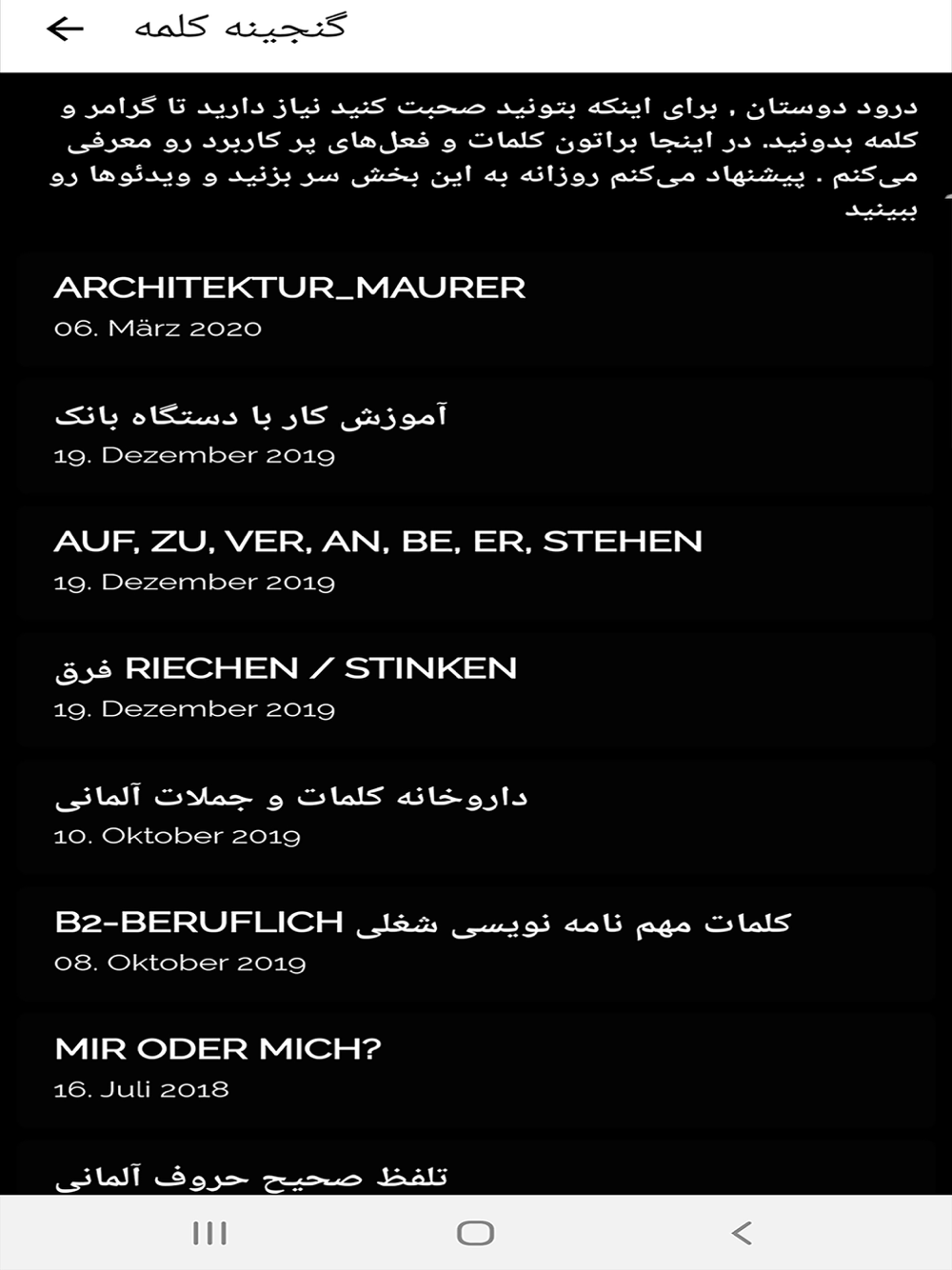 With this free Aplication, you can learn german very simple. We collect many Word and sentences for free for you in our Aplication and you can use many Part of our Aplication without Internet for Example in the way of your Office and learn German. We hope t o help you.