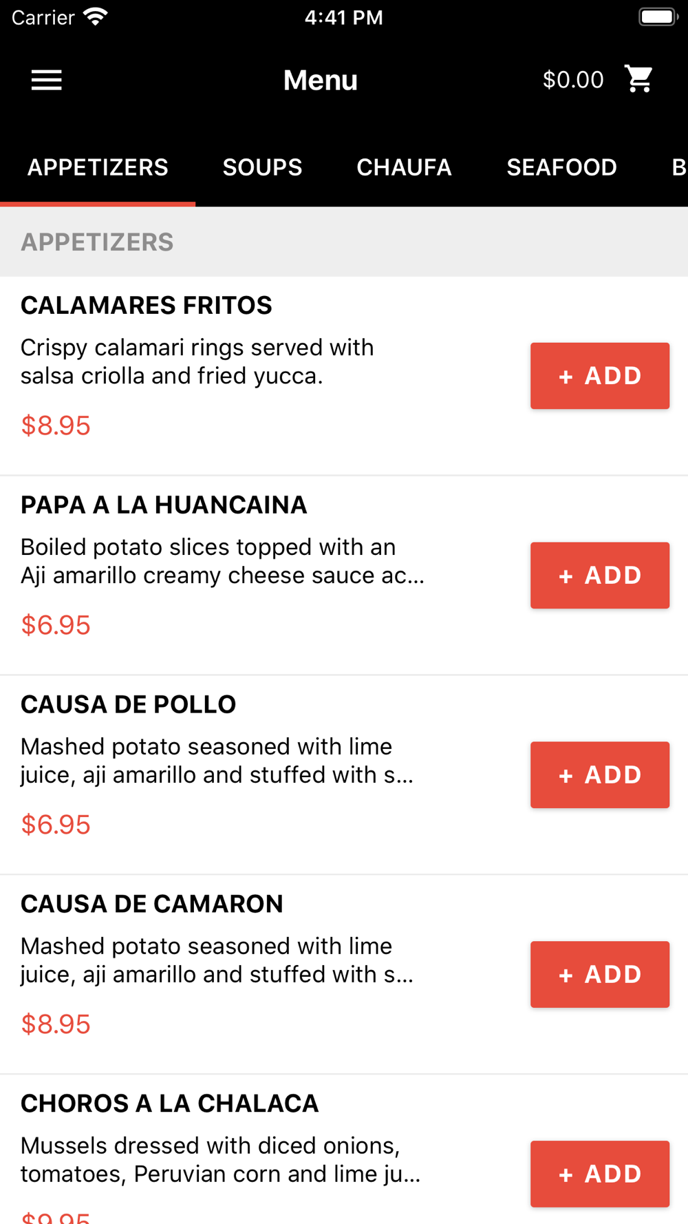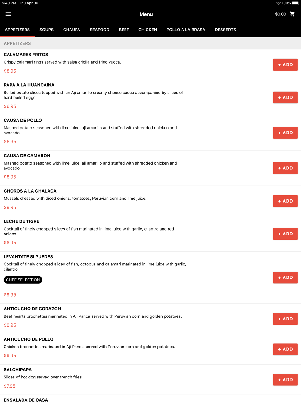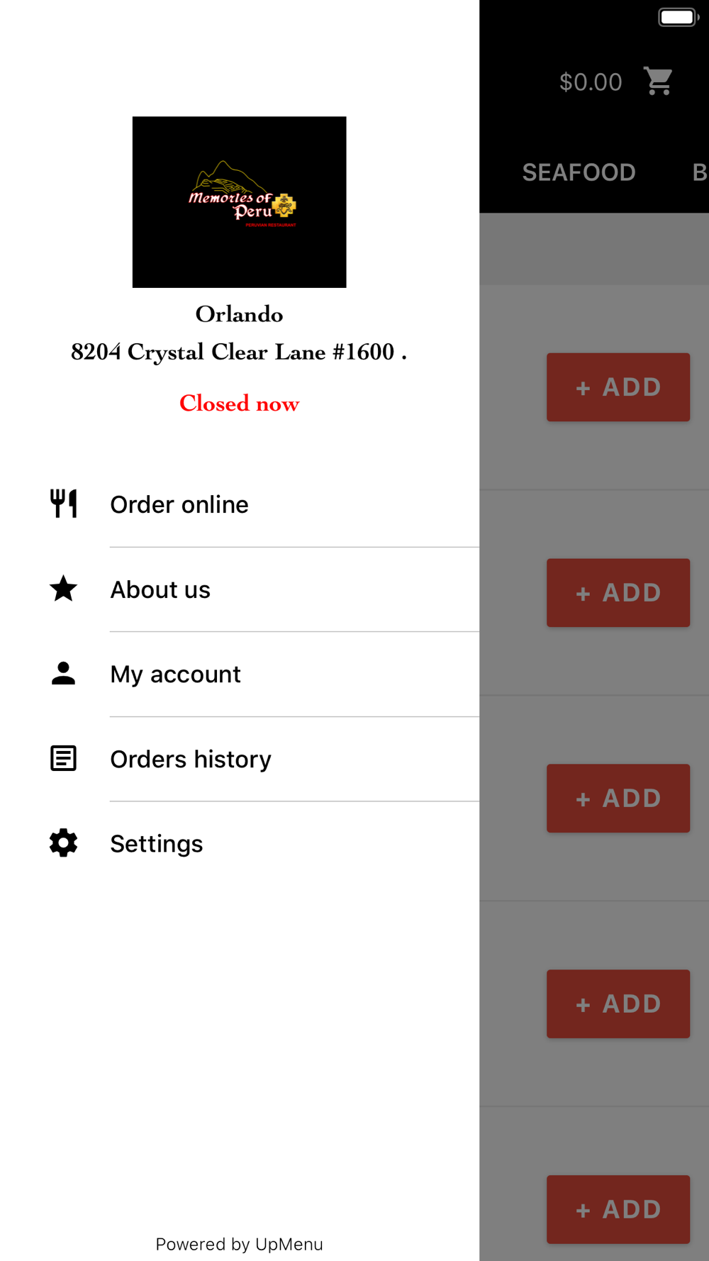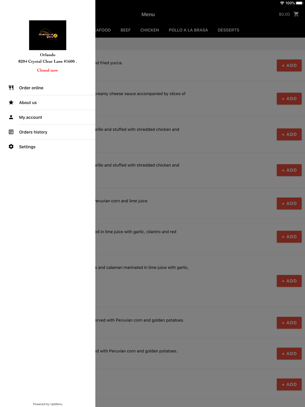Order online in Memories of Peru