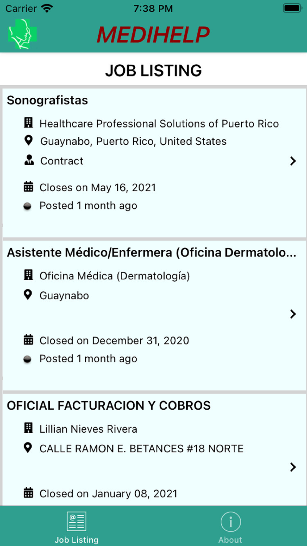 Mobile application to review job listings in the Healthcare Industry provided by MediHelp Staffing and HR Services. Users of the application will receive push notifications when a new job listings are made available.