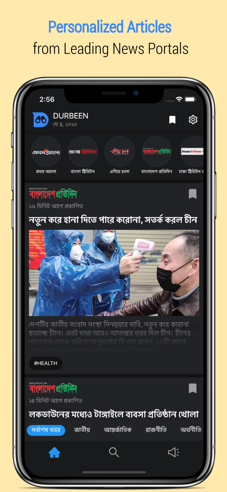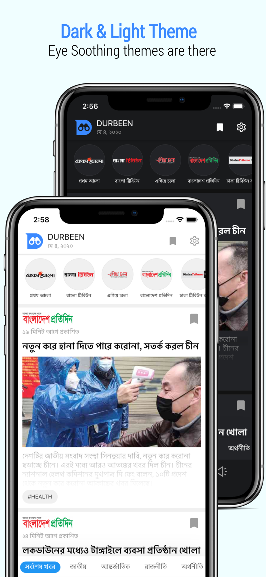 Durbeen provides news from the leading sources including Prothom Alo, Samakal, Bangladesh Pratidin, Egiye Cholo, Dhaka Tribune, Daily Star, Jugantor, The Independent etc. More are coming.
