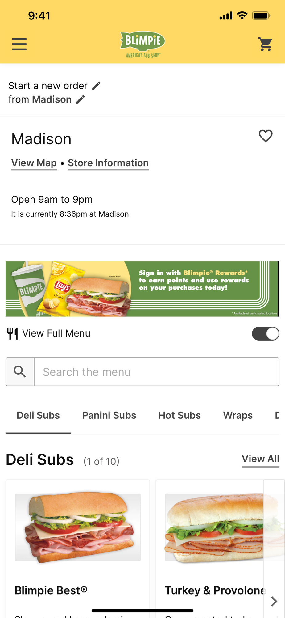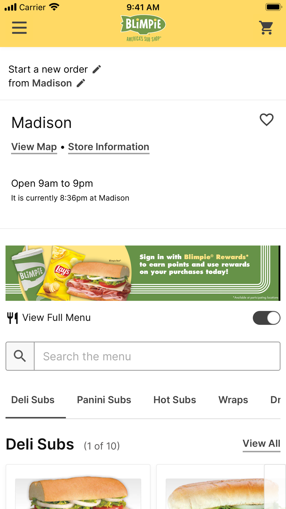 At Blimpie, America’s Sub Shop, we are proud to make our subs bigger and better, that’s the Blimpie way! Made with high quality ingredients, our subs, salads, and wraps are made fresh. With the Blimpie app, you can search for store locations nationwide and order ahead at participating locations. Just search for your favorite Blimpie store and place your order for your handcrafted sub, salad or wrap! Pay ahead on the app and have your food ready in store upon arrival. The fastest way to eat fresh!