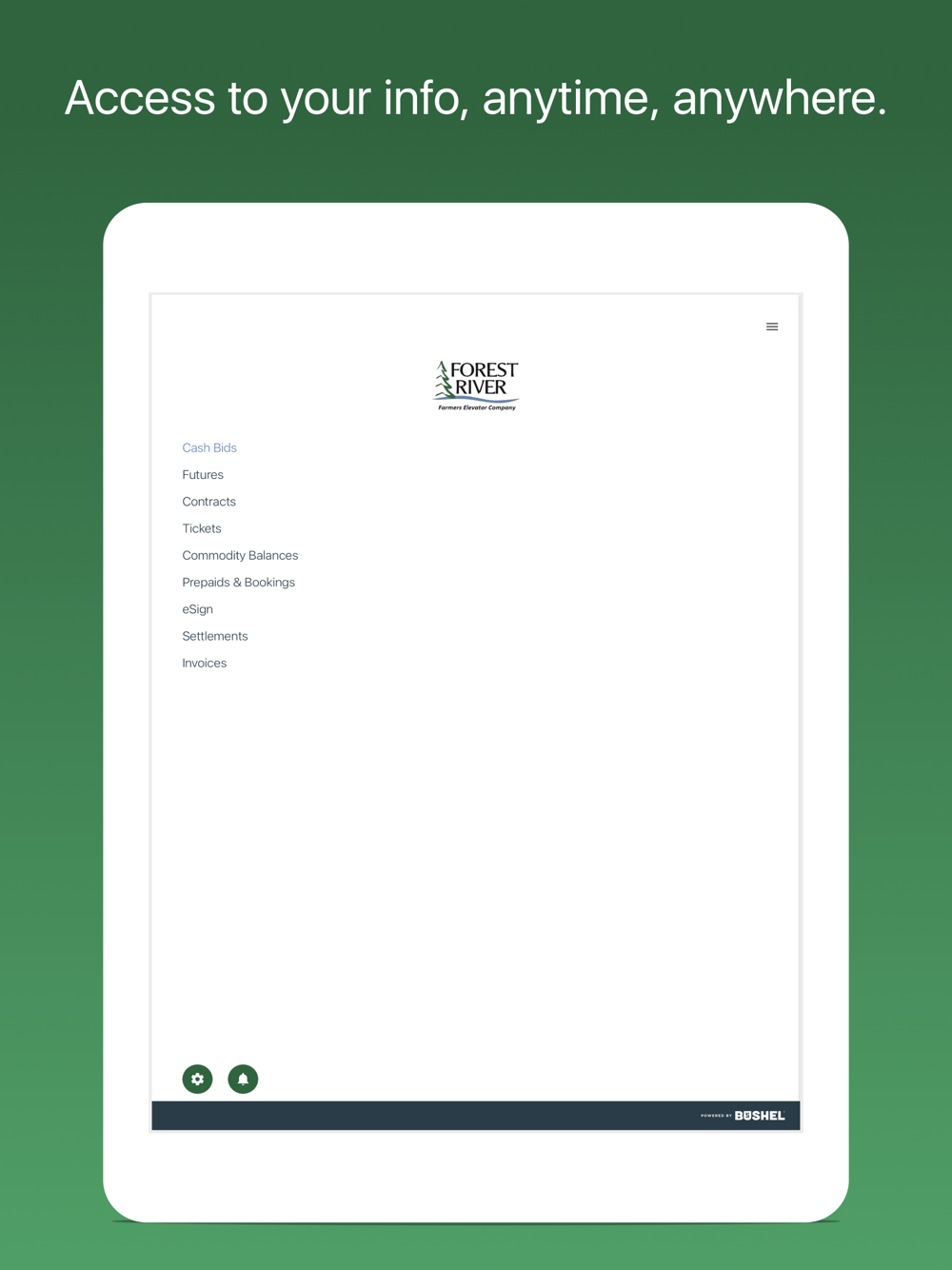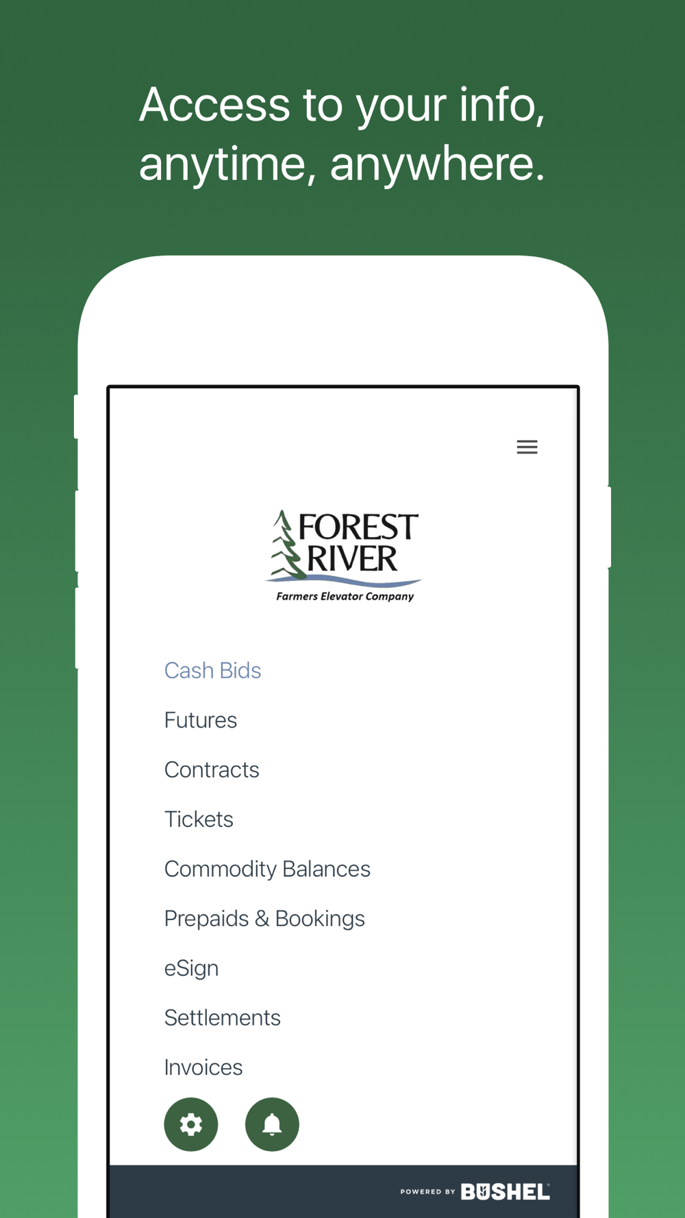 The Forest River Farmers Elevator app is free, secure, and developed by the industry-leading Bushel platform.
