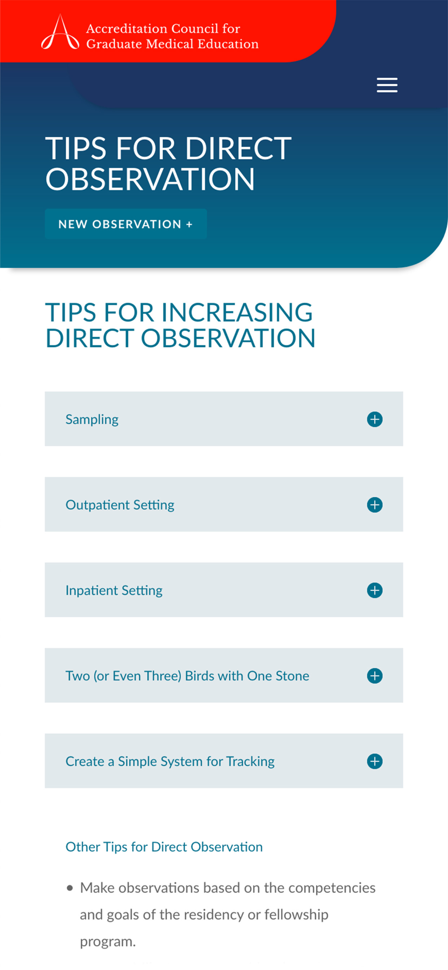 Direct observation is an essential method for the effective and valid assessment of clinical skills, as it focuses on the actual abilities of learners’ interactions and care of patients. This tool helps faculty members provide specific and timely feedback and coaching, and ensure faculty members make proper supervision decisions.