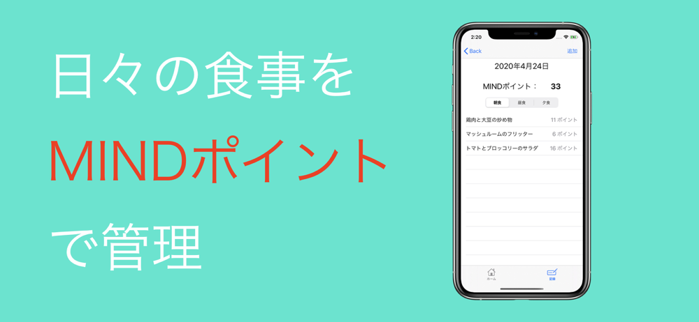 脳に良い「MIND」フードを記録していくアプリです!