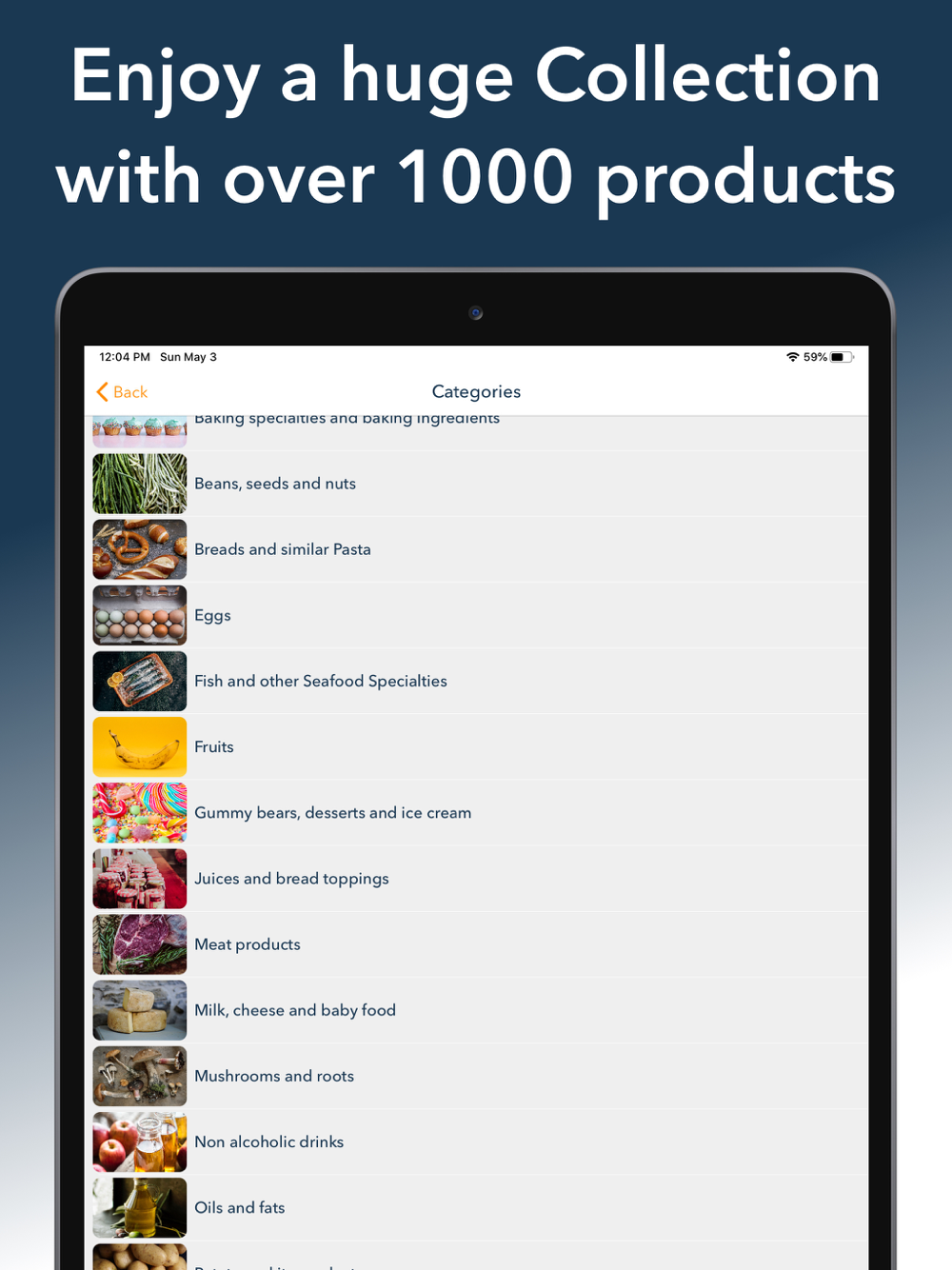With DietAssistant you have access to a database with over 1000 products with many nutritional information. If you miss any product just add own products to the database.