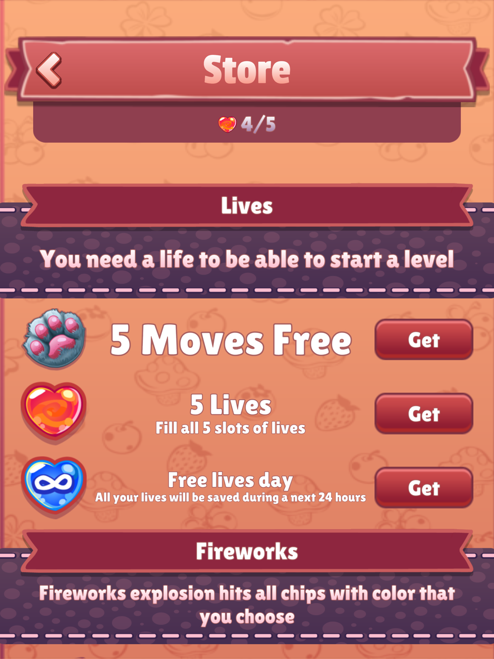 THE FRUITY CRUSH game is completely free! You can get booster or bomb by winning levels or by showing short ads.