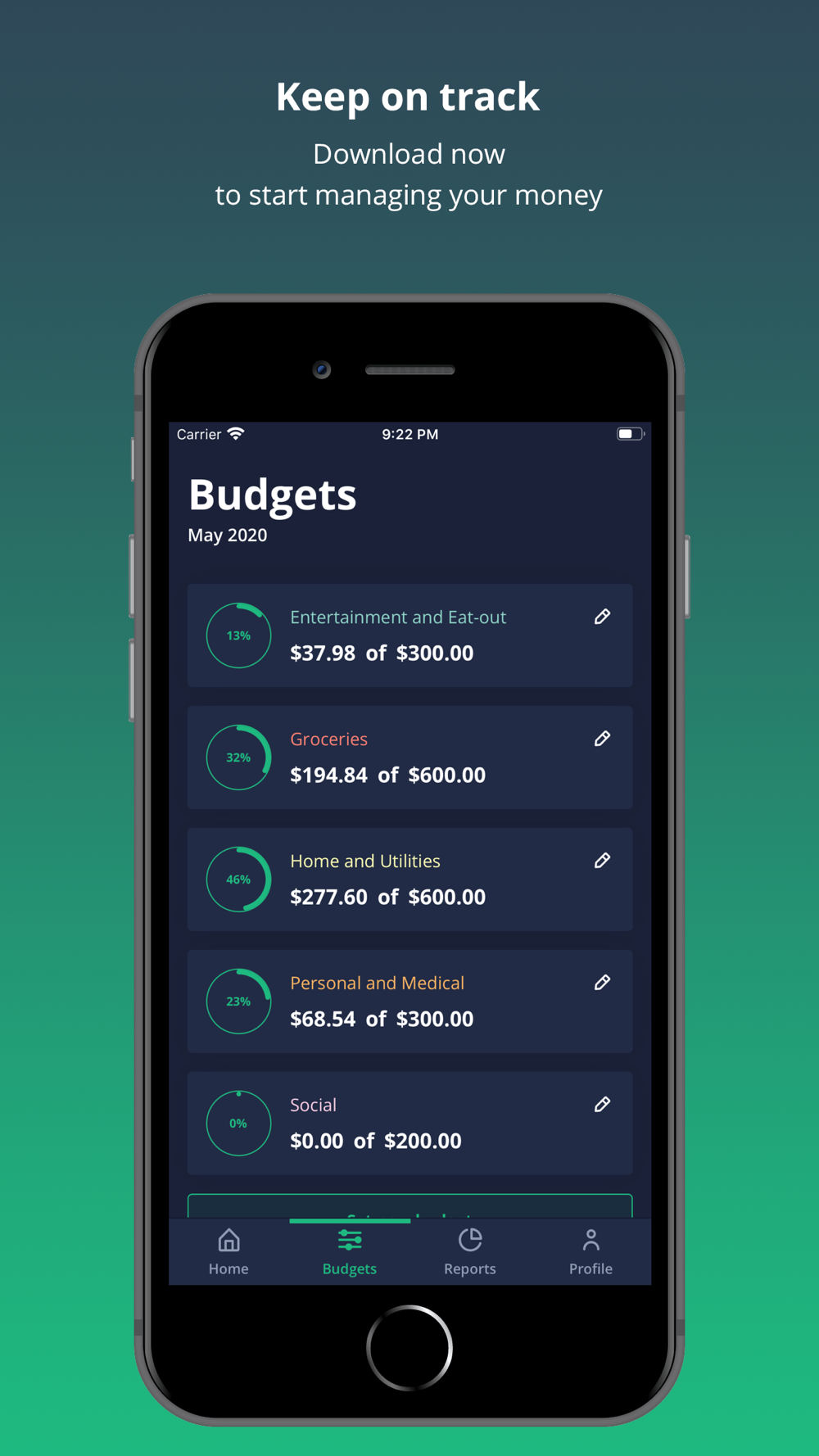 * Set multiple budget categories from within the Moneyvest app in just seconds.