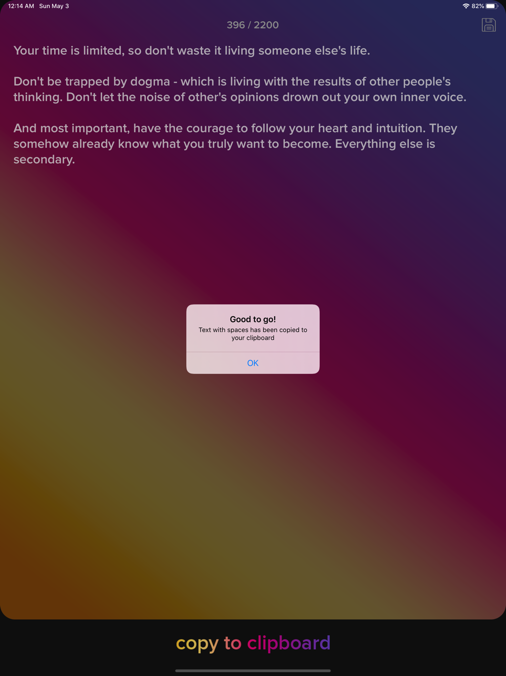 Line Breaker allows you to add line breaks and paragraphs to your Instagram captions. Just write your caption (with spaces), tap the "Copy to Clipboard" button, and paste the copied text in your Instagram caption. Save as many captions as you want! Free, no ads for a limited time.