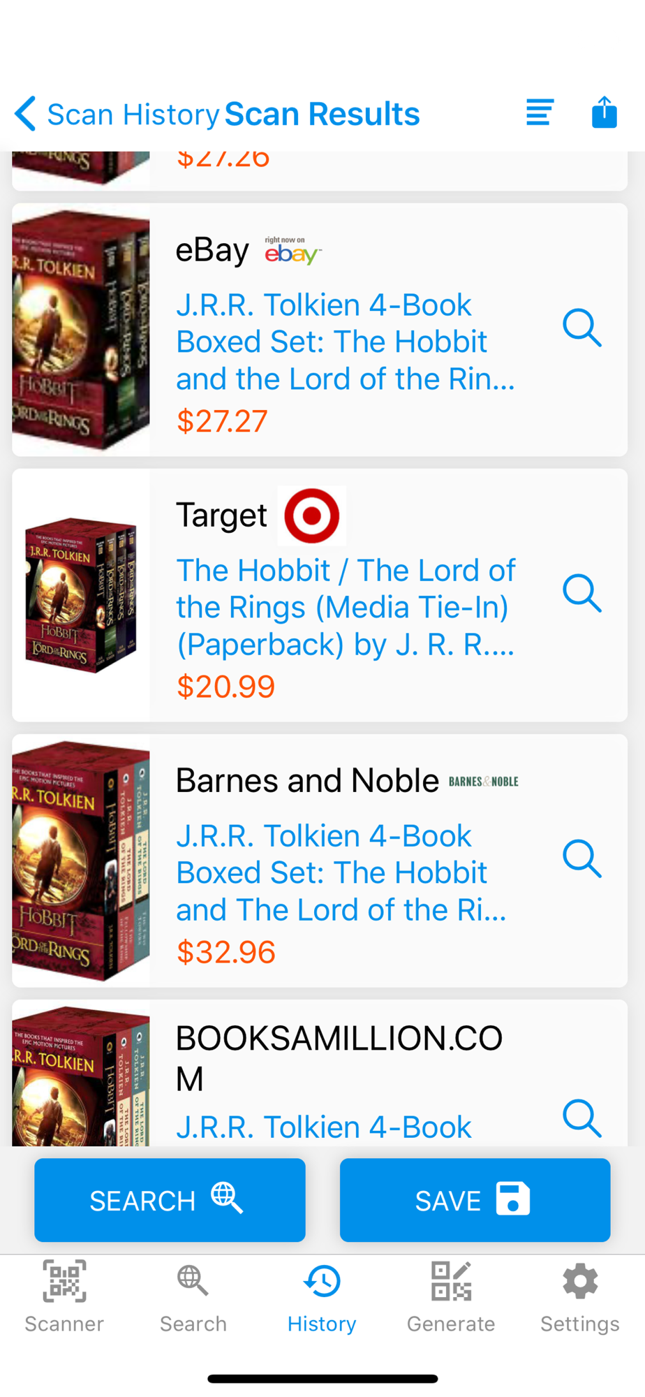Scan the barcode or QR code of any product (such as books, electronics, clothes, etc) and find out which major retailer has the best price. Check the lowest price out there before you make a purchase!