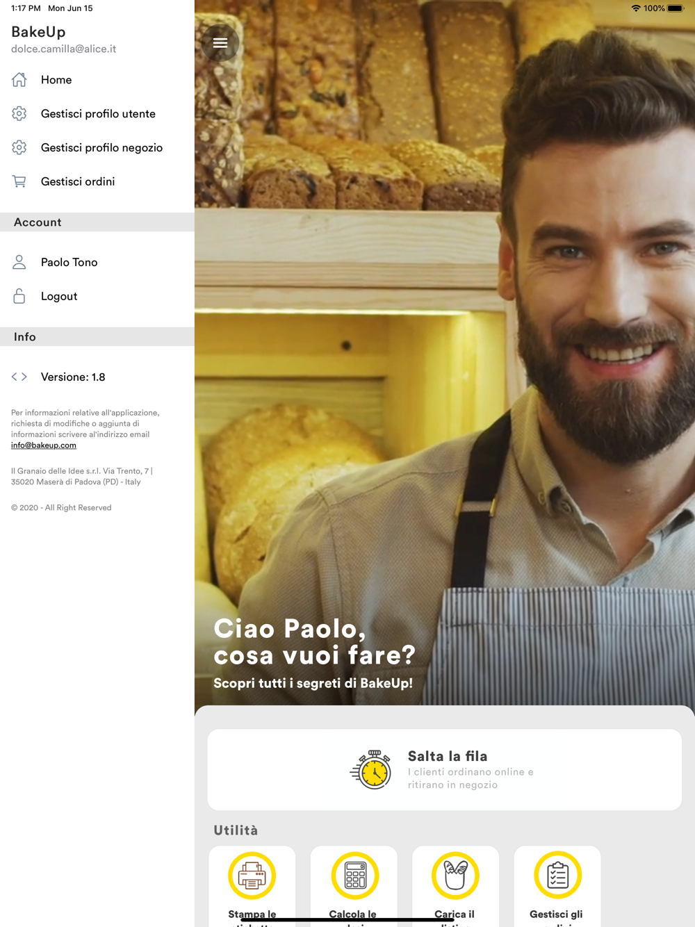Permette di creare una scheda negozio con cui promuovere il proprio panificio, geolocalizzarlo per gli utenti finali e gestire ordini, per i propri prodotti, con ritiro diretto presso