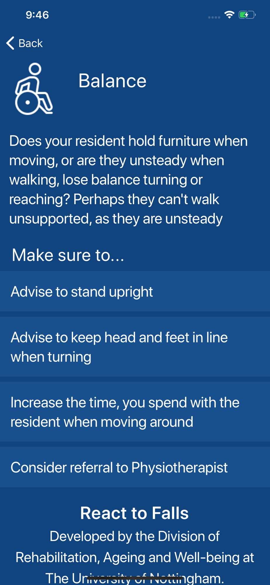 That's why researchers at the University of Nottingham have worked with care home residents and staff on this falls prevention app, to help people reduce the number of times they fall over.
