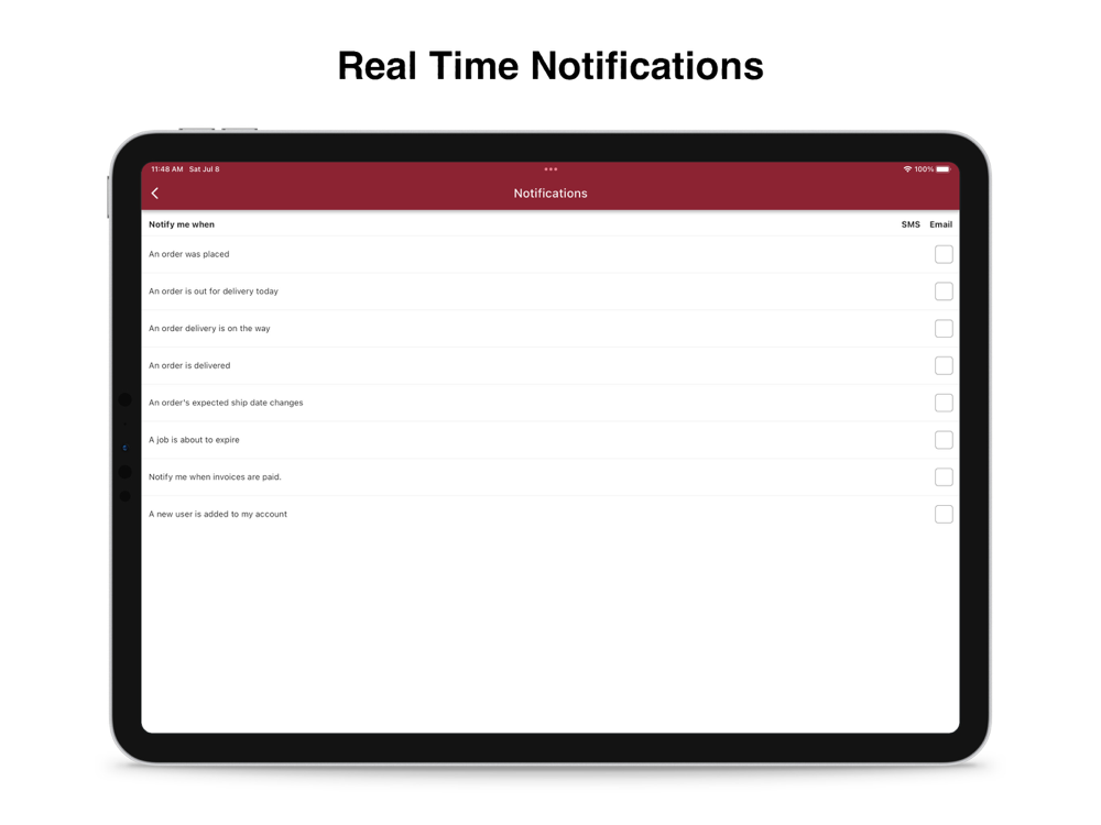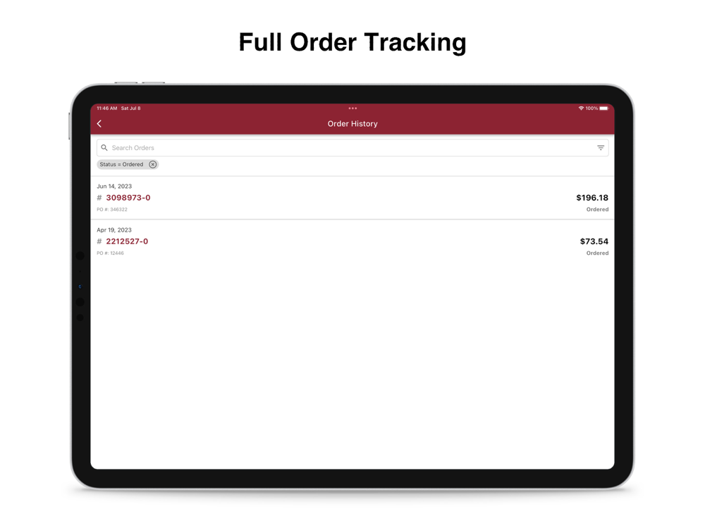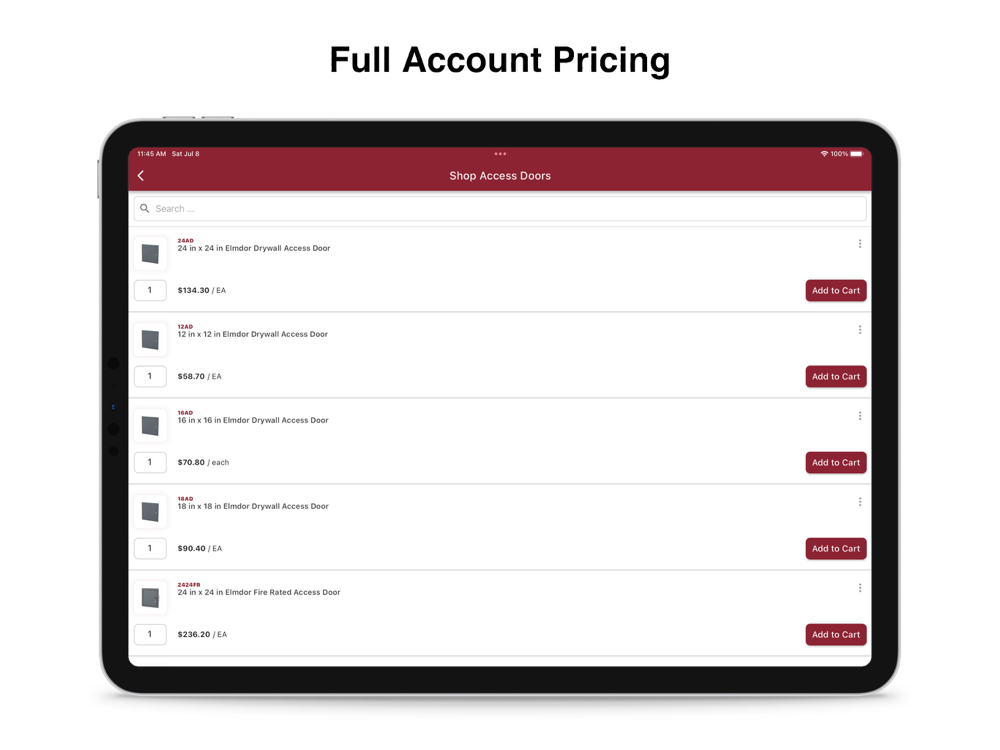 The Tejas Materials app features include full access to your online account and account pricing, as well as real time inventory and full order tracking.