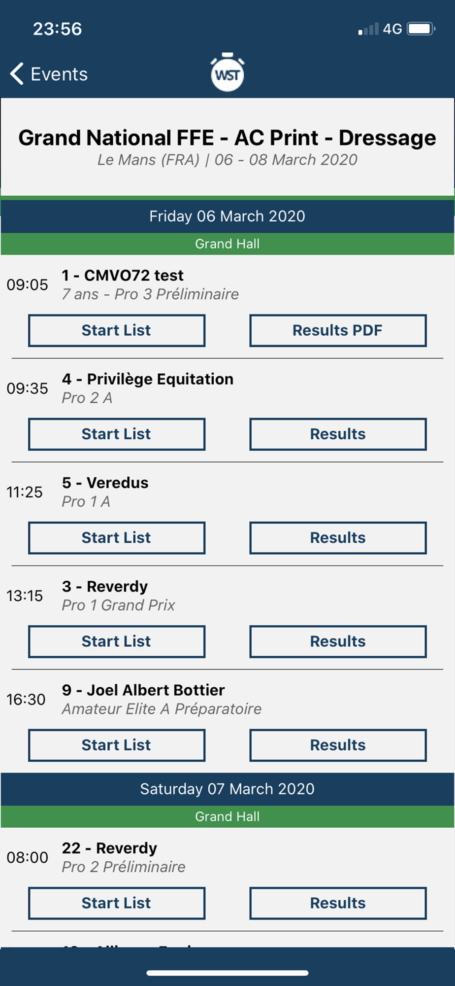 L'application WST vous permet de consulter les Start-List, le Live et les Résultats des événements que nous gérons.