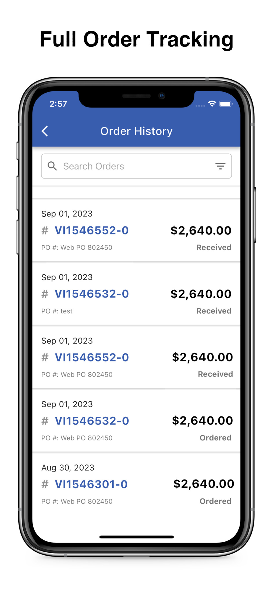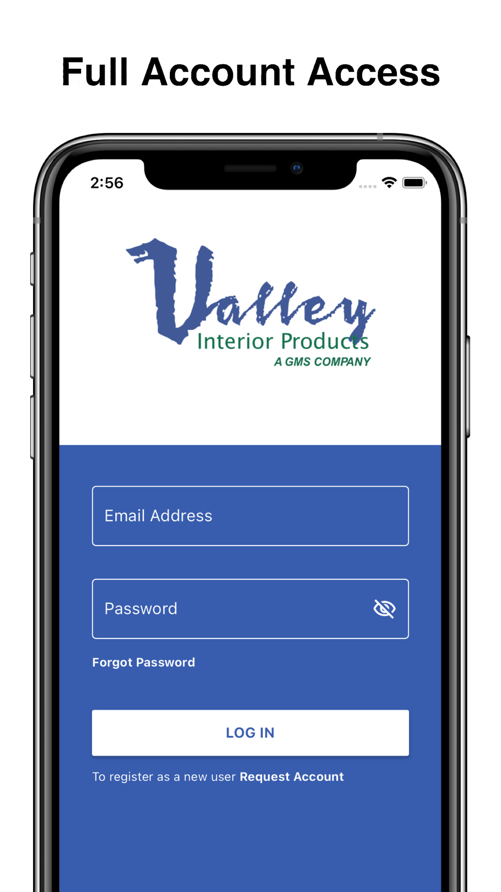 The Valley Interior Products app features include full access to your online account and account pricing, as well as real time inventory and full order tracking.