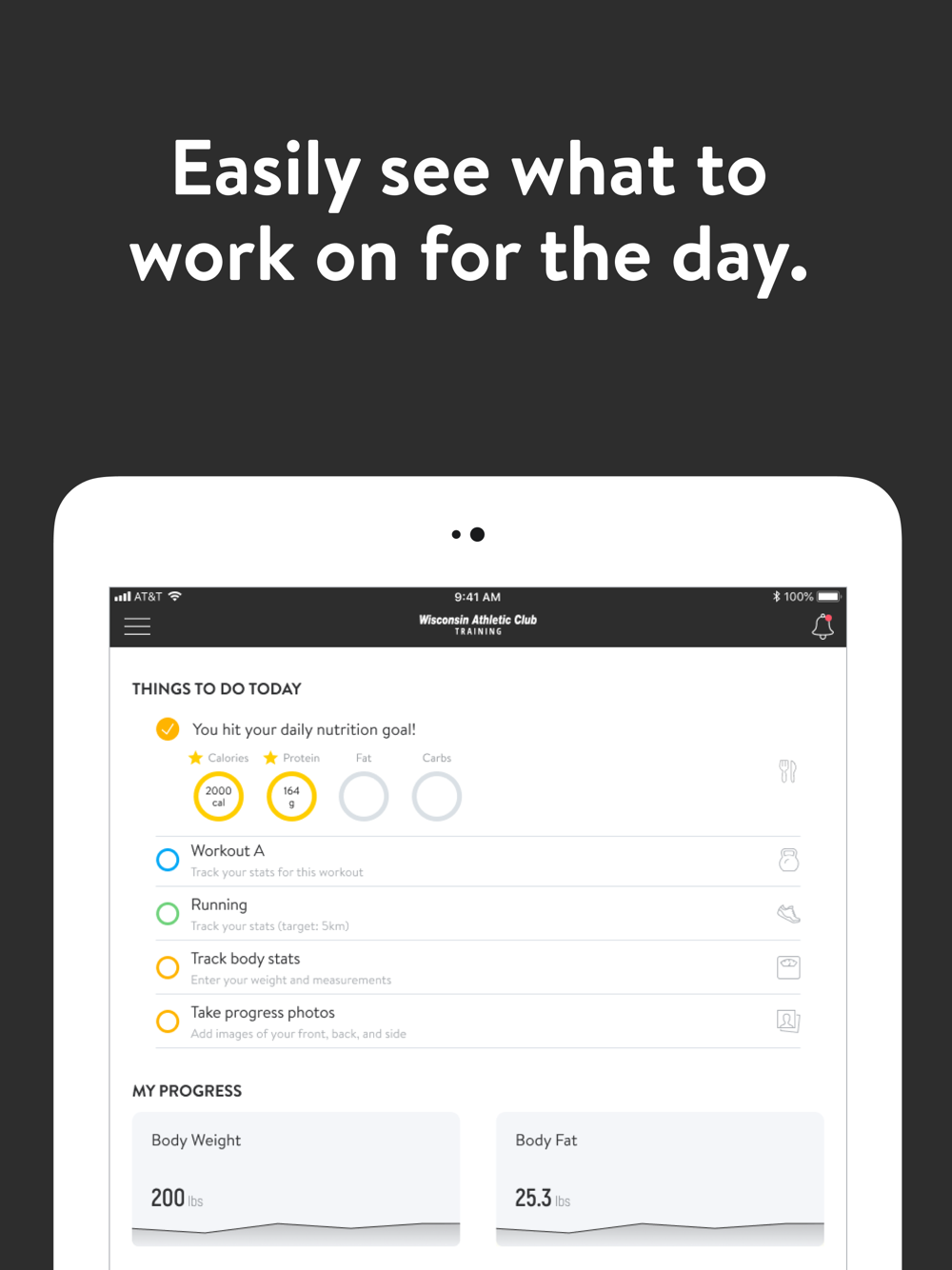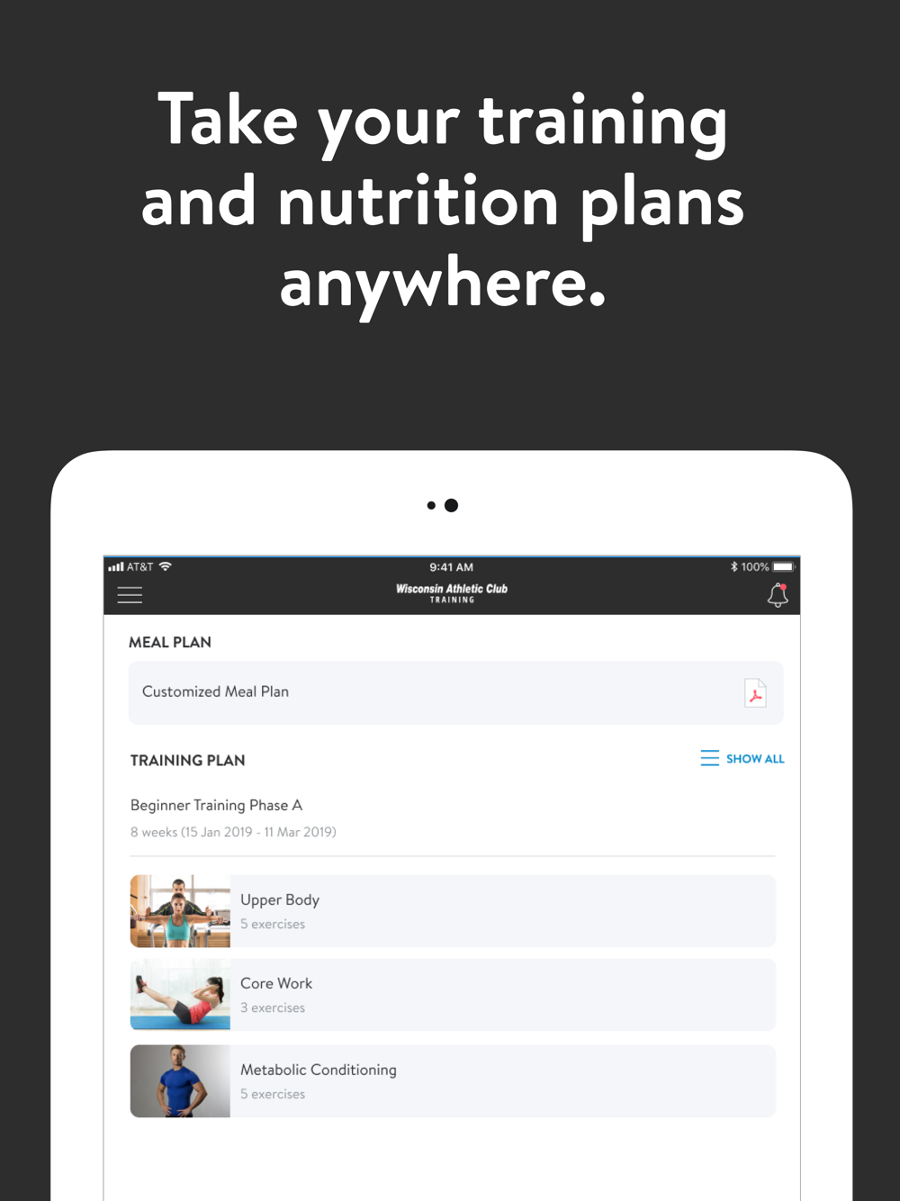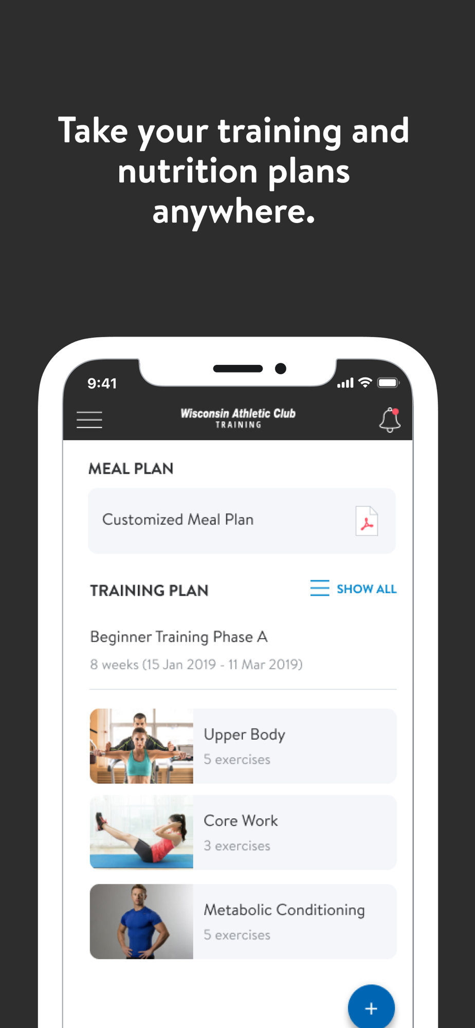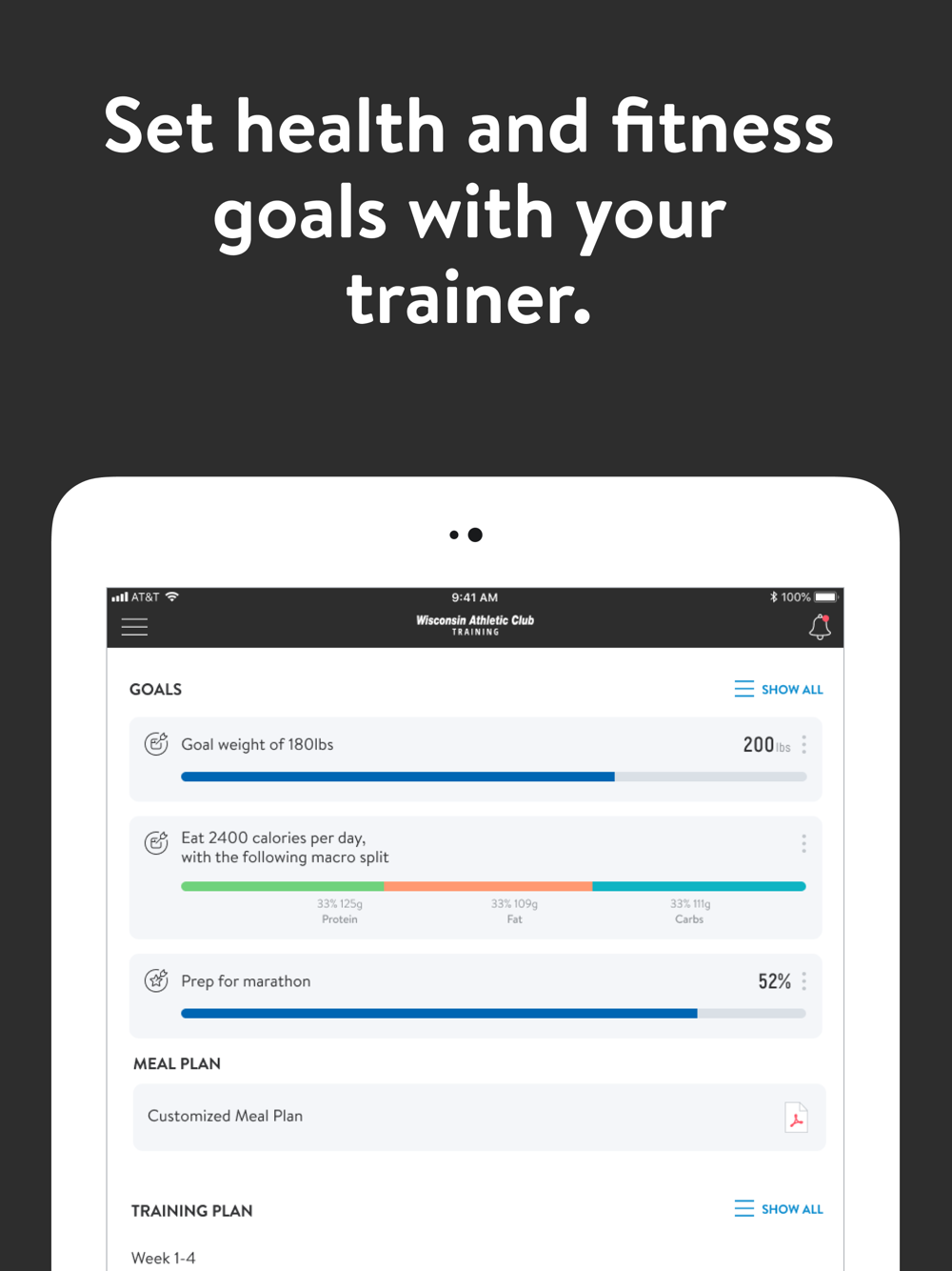 With the WAC Training App, you can start tracking your workouts and meals, measuring results, and achieving your fitness goals, all with the help of your personal trainer.