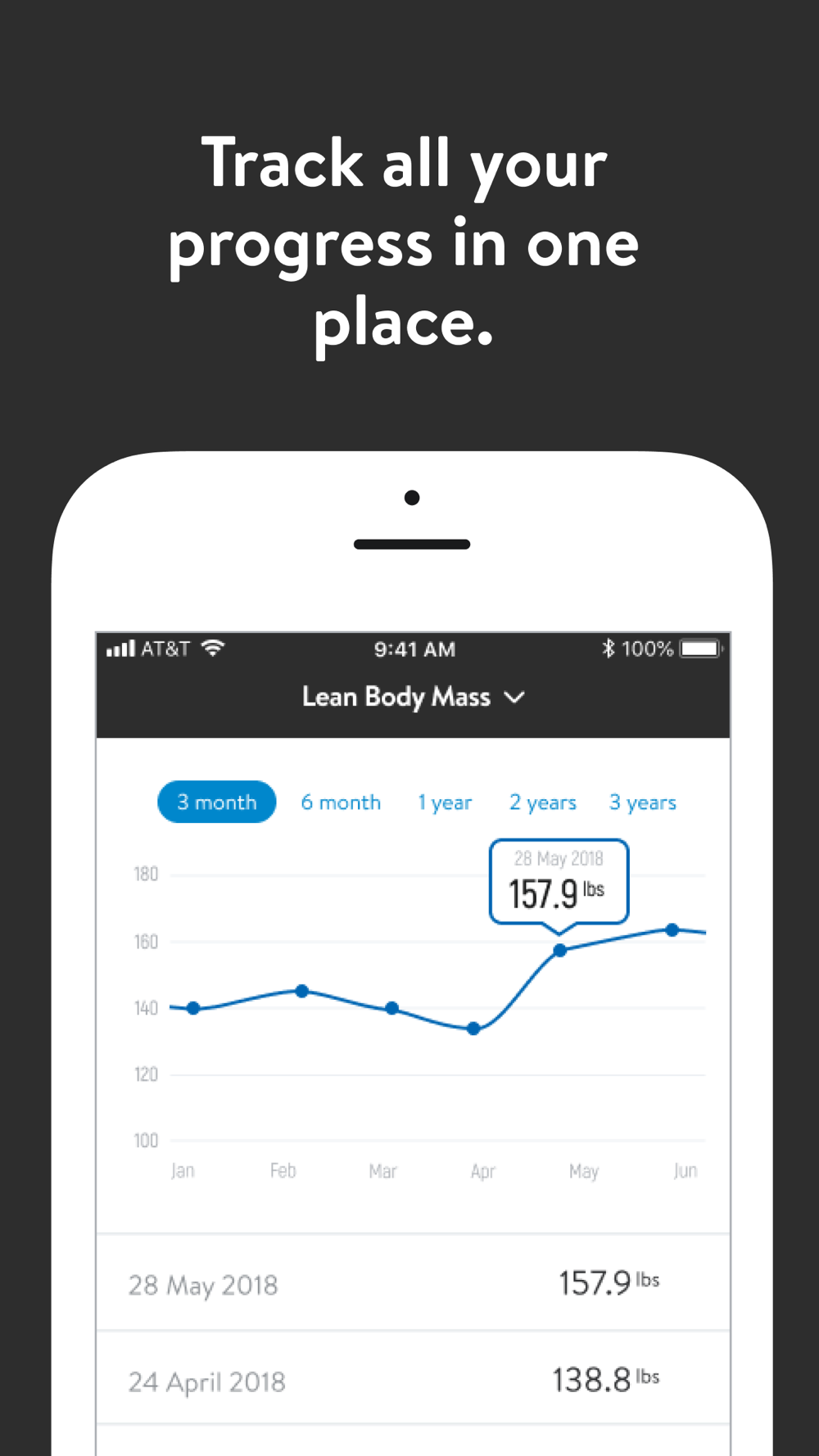 - Connect to wearable devices like Apple Watch (healthkit), Fitbit and Withings to sync body stats instantly