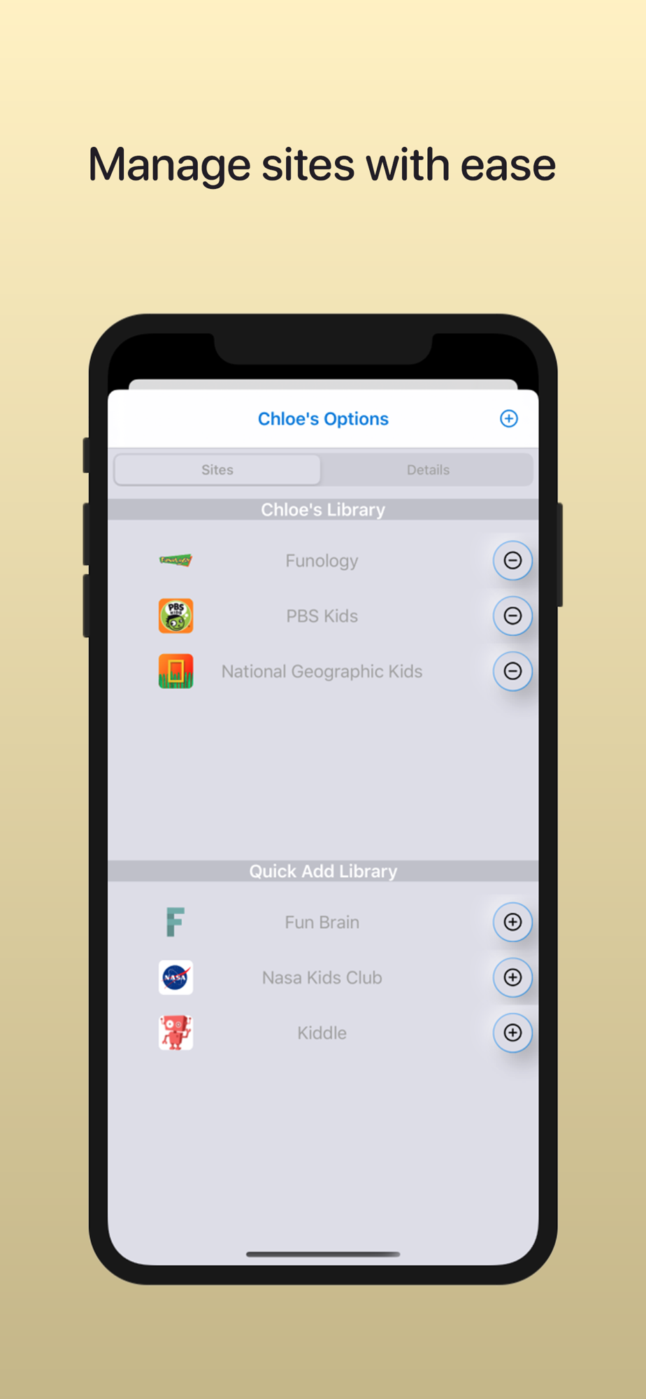 Add the sites you want your kids to see and everything else is blocked automatically. Navigation within the website is allowed but all links leading out are not.