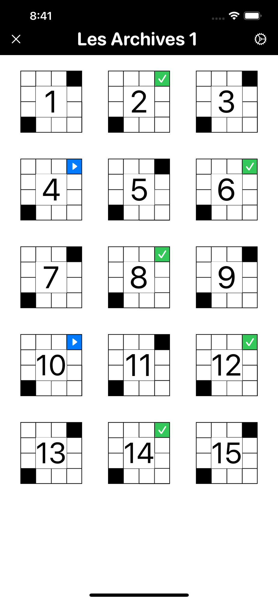 Toutes les grilles peuvent être jouées en mode standard ou en mode grille blanche. Sur iPad, choisissez entre le mode portrait pour un plus grand focus, ou en mode paysage pour avoir une meilleure vue d'ensemble.