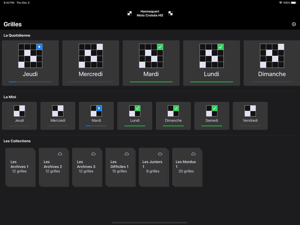 * Mots Croisés HD 2 nécessite une connexion internet pour télécharger la grille du jour, la mini et les collections. Une fois téléchargées, les grilles peuvent être jouées hors-ligne.