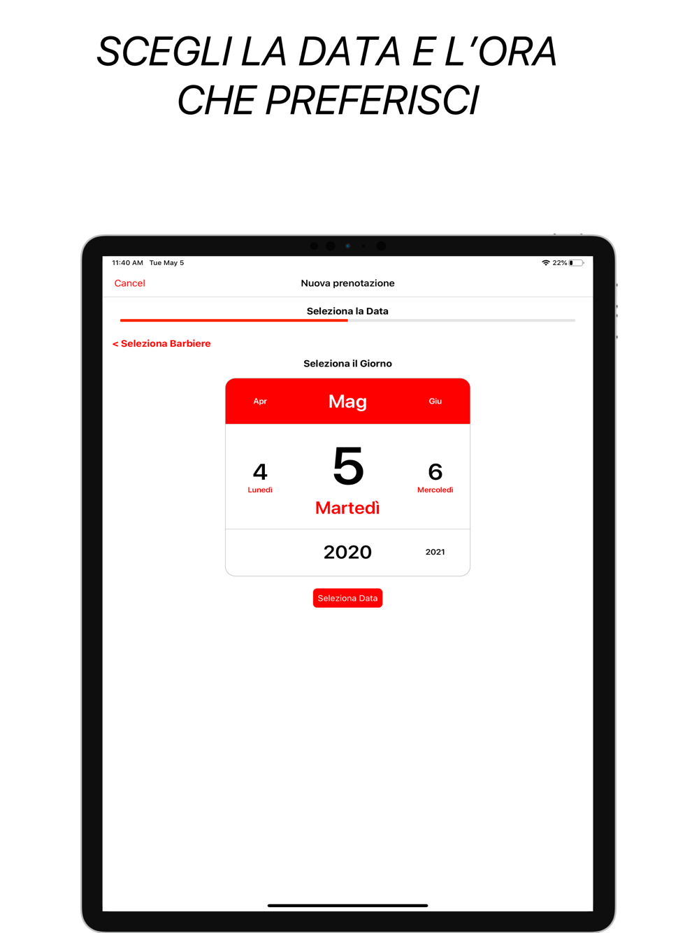 Un design semplice e intuitivo ti aiuterà in pochi semplici passi ad effettuare la prenotazione, scegliendo il tuo barbiere preferito e il tuo servizio desiderato.