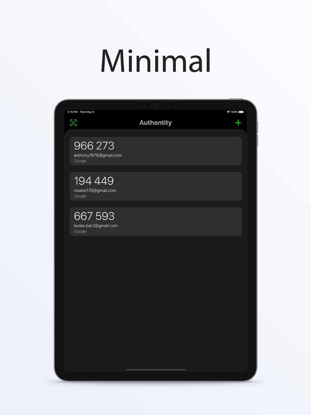 - Authentity uses biometric authentication so only you have access to your 2FA/MFA authentication tokens.