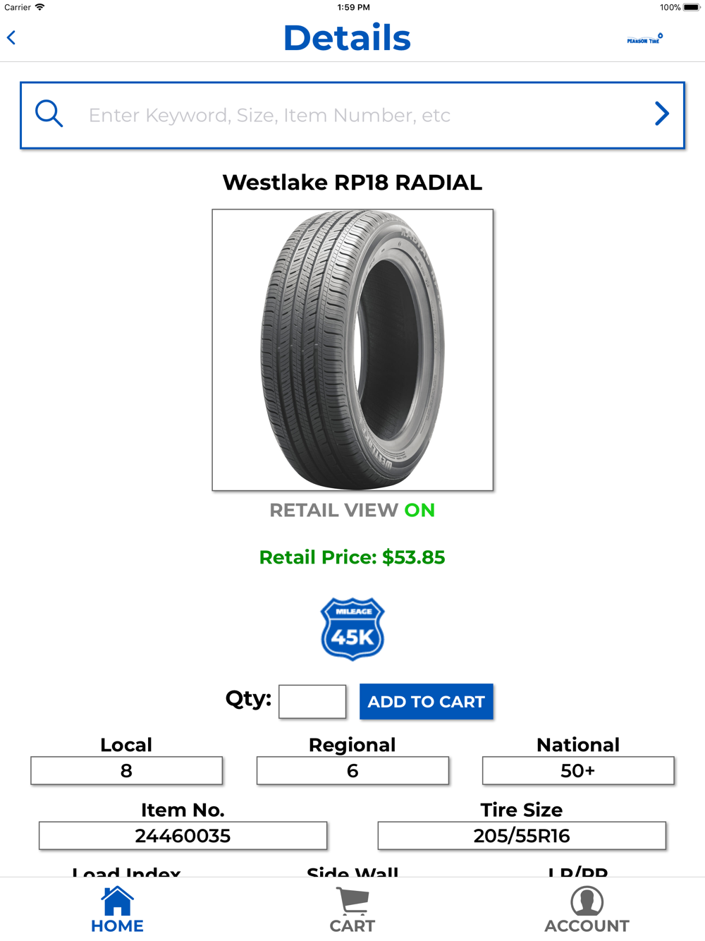 · Use your devices camera to scan the barcode on tire labels to quickly find specific items and inventory.