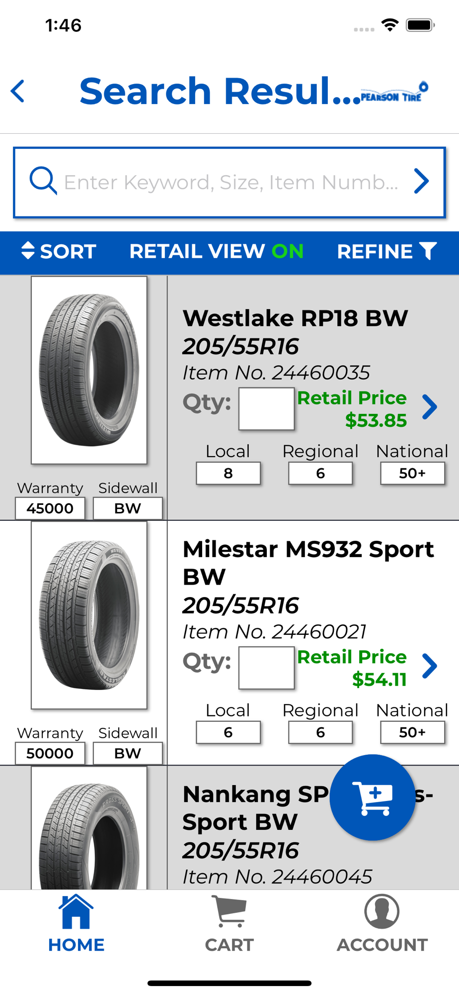 Pearson Tires offers an app with the same great features you see pearsontire.com.