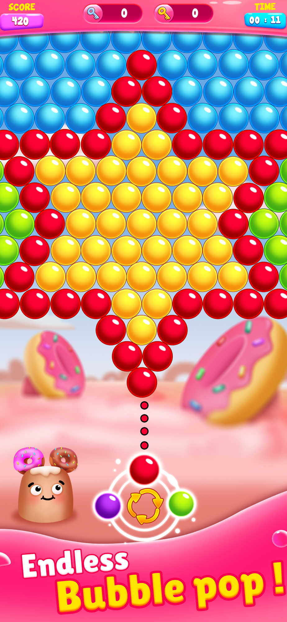 - Shoot Endless bubbles and Collect keys, Treasure Chest, and more