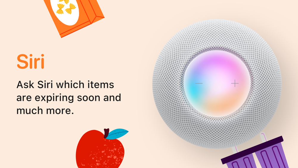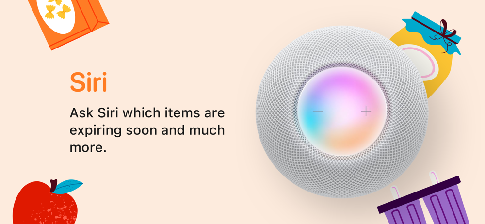 Use Siri to add things to your lists and quickly check what's expiring by asking Siri "What's expiring soon?" or "what's expiring today?" with your iPhone, iPad, Apple Watch, M1 Mac or HomePod. You can also create Siri Shortcuts for Fridg.