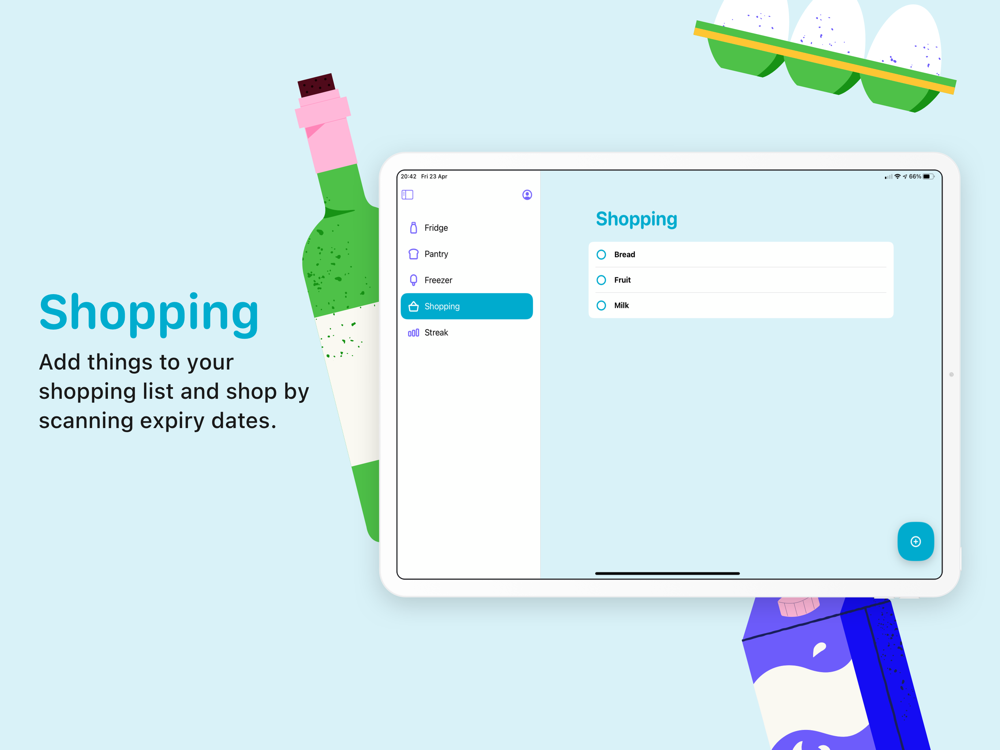 To make things even easier you can scan the date of items as you shop which will add them to your basket and give them an expiry date ready for when you move them to your fridge, freezer, or pantry lists.