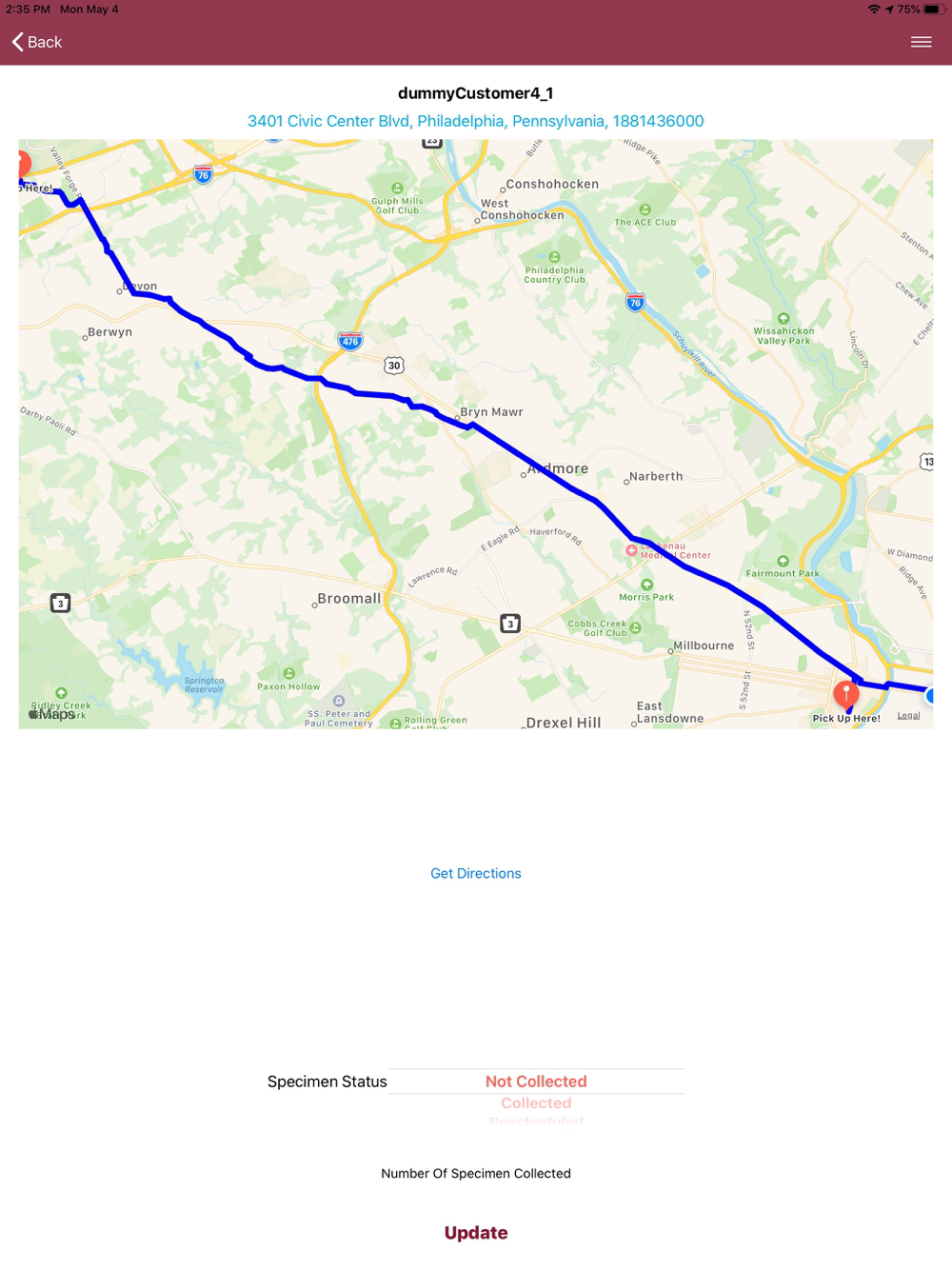 2. The driver can click on their earliest pickup and add the status and number of samples collected from the customer and update the admin about it.