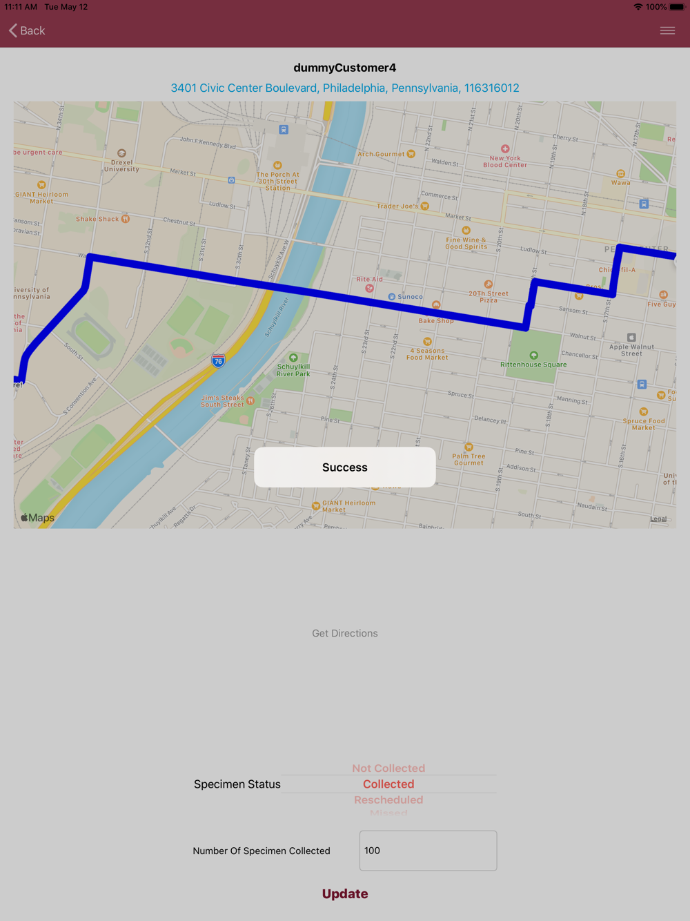 3. The driver can click on the get directions button to navigate to the customer's location through Apple Maps.
